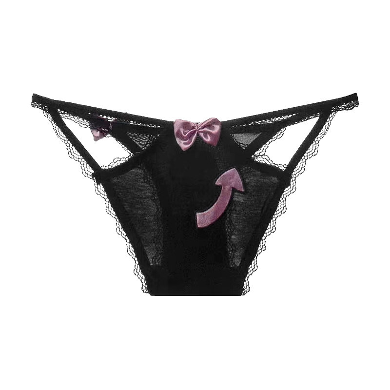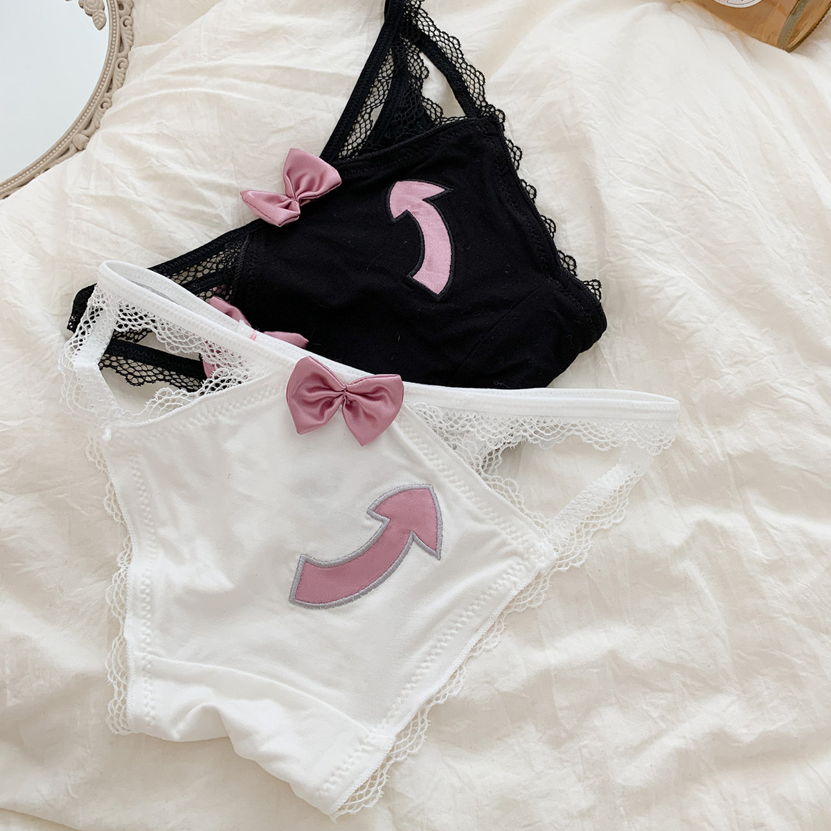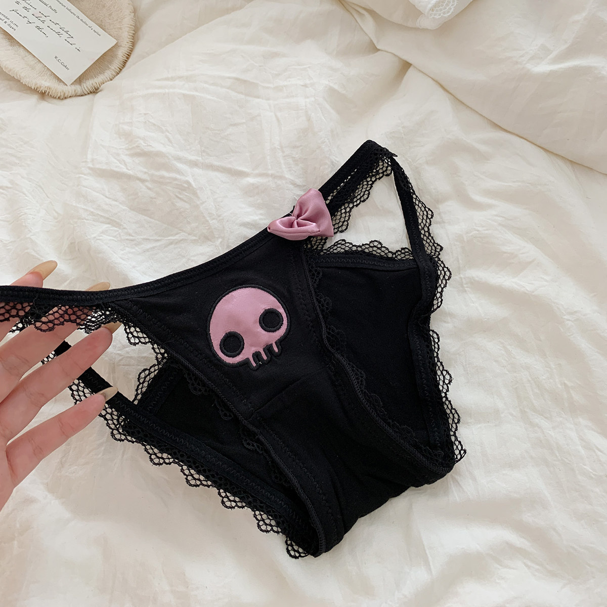 日系可爱甜美骷髅小裤 软妹蕾丝边蝴蝶结低腰镂空三角裤