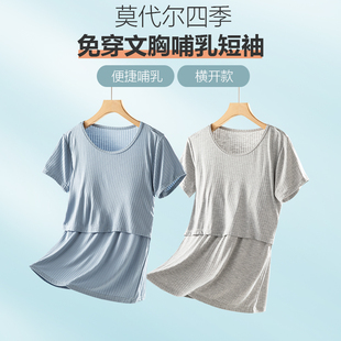 薄 怀孕期衣服T恤大码 哺乳背心短袖 夏天哺乳衣外穿哺乳期上衣半袖