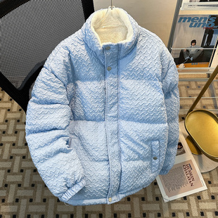 300斤特大码 韩系简约百搭棉服外套女胖mm蓝色加厚保暖面包服上衣