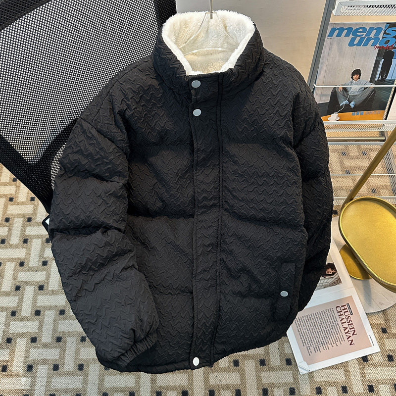 黑色休闲百搭连帽夹克上衣 胖mm双面穿毛绒棉服外套女冬季 大码 女装