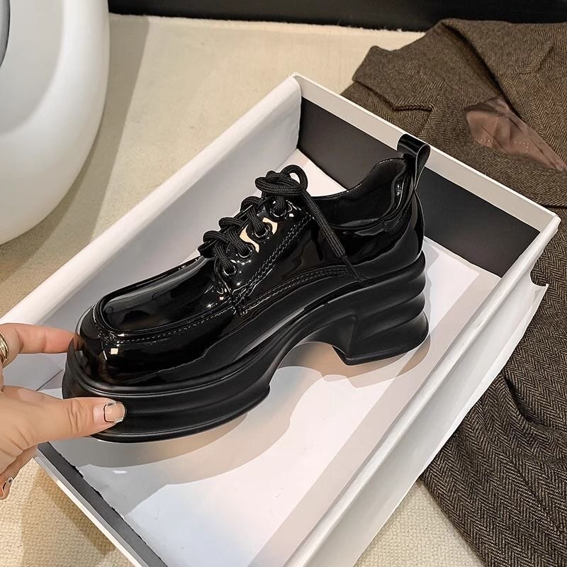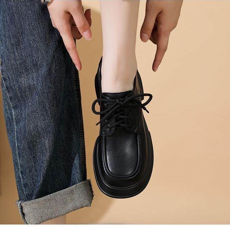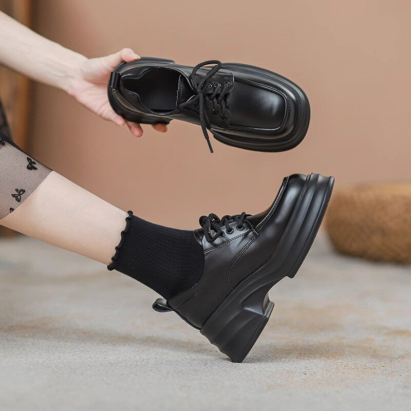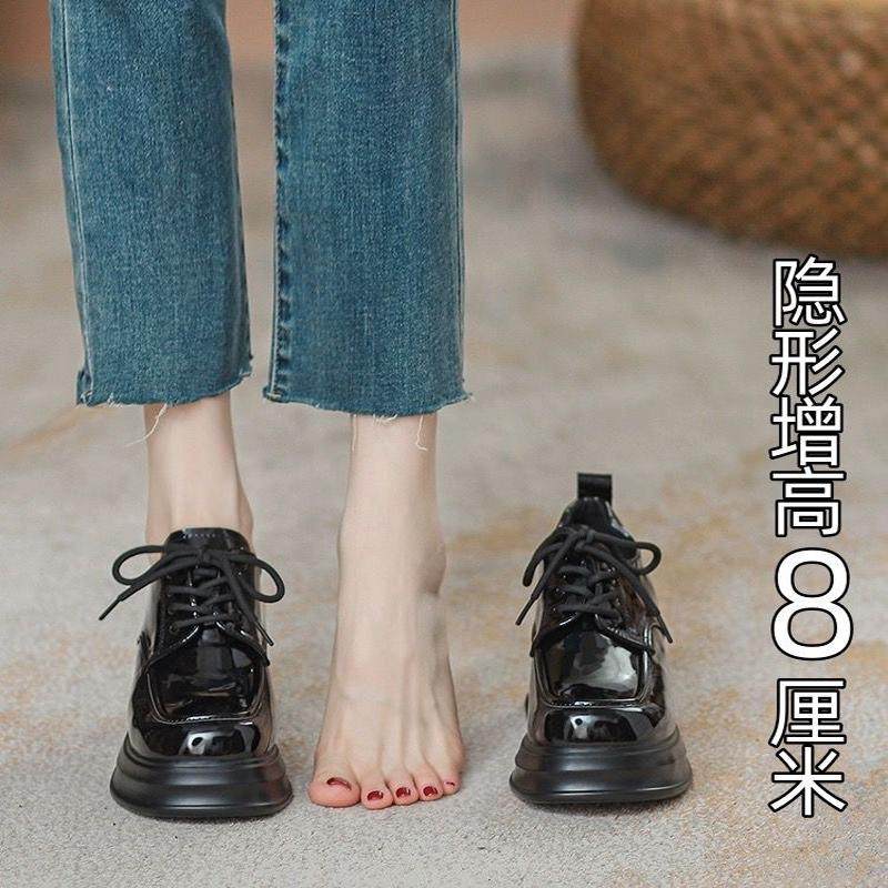 内增高系带高跟单鞋 英伦风小皮鞋 单里乐福鞋 厚底松糕鞋 女2024新款