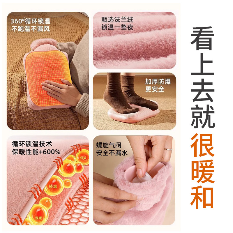 热水袋充电式 防爆电暖宝毛绒可爱女注水暖手宝宝电热宝暖水袋加热