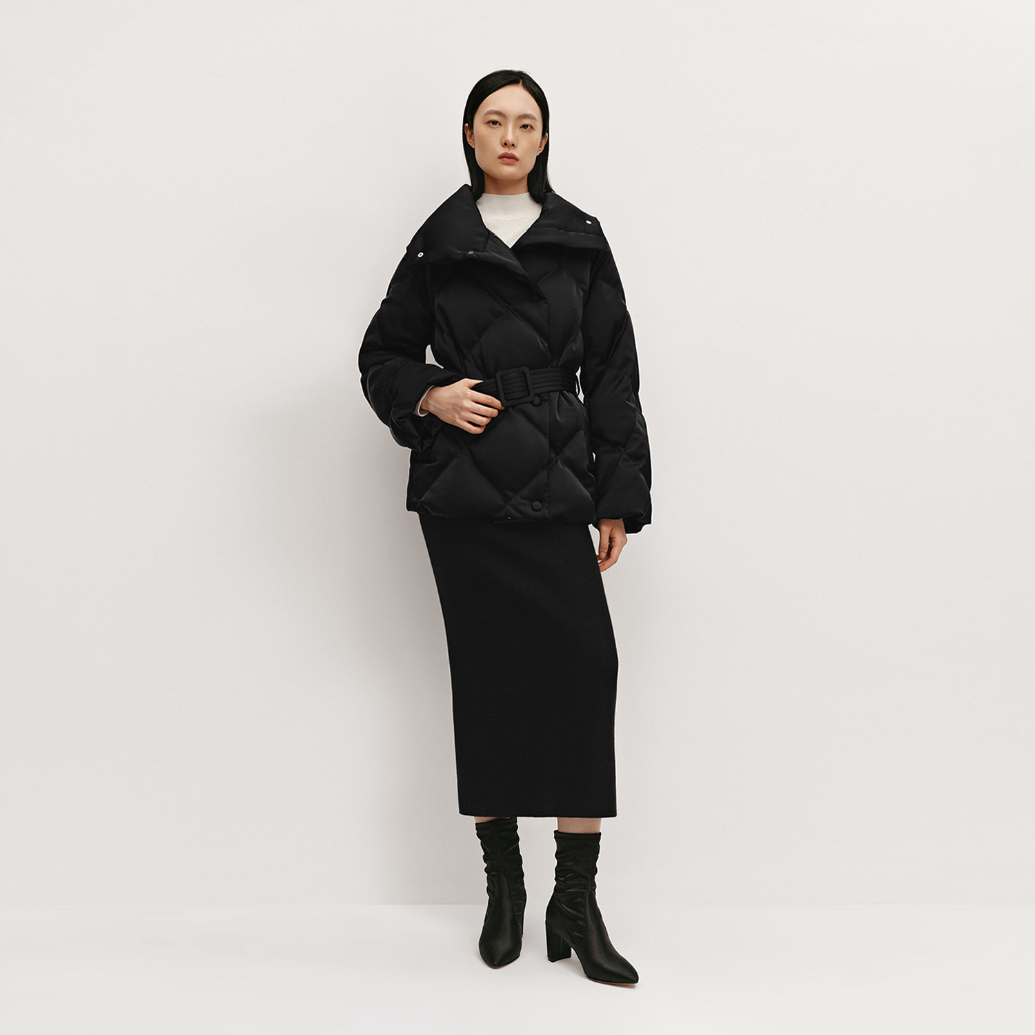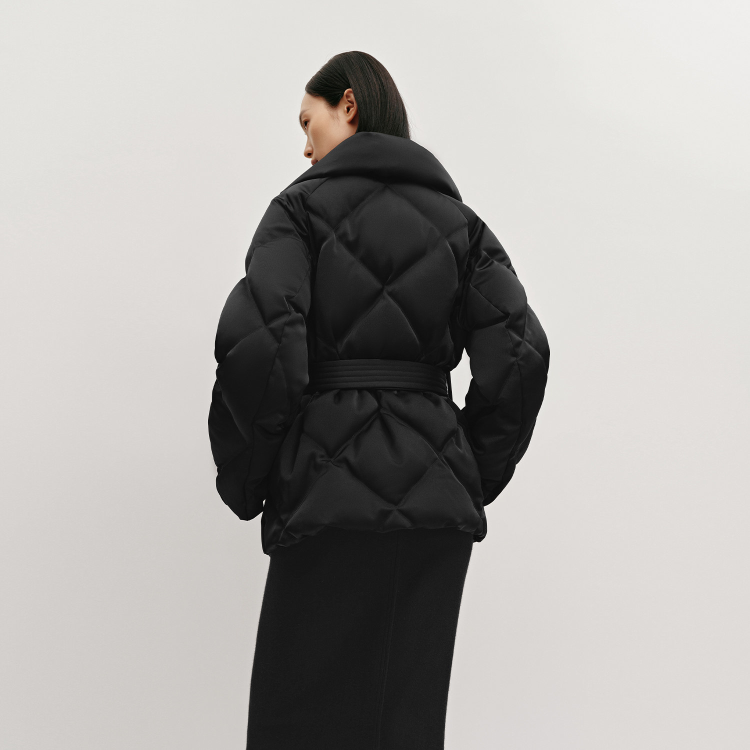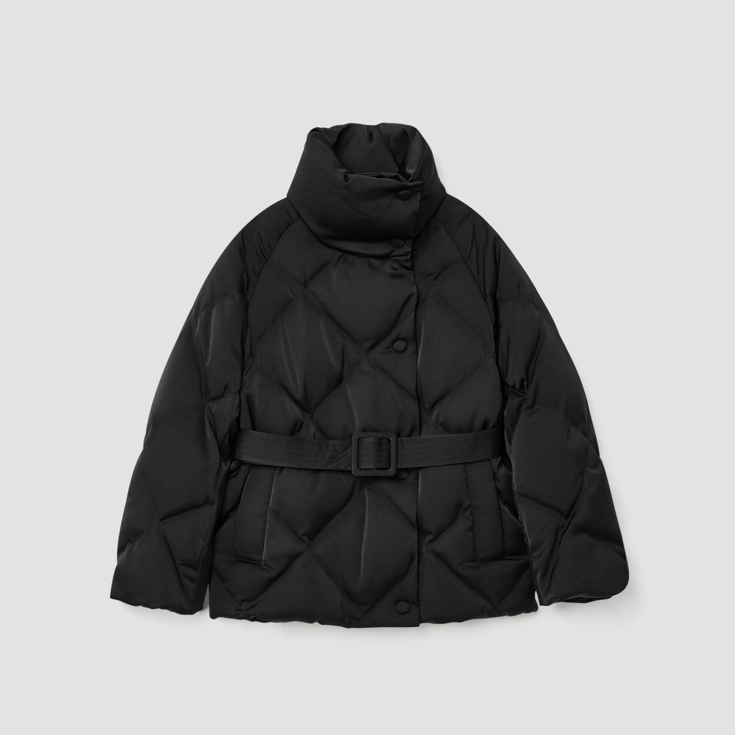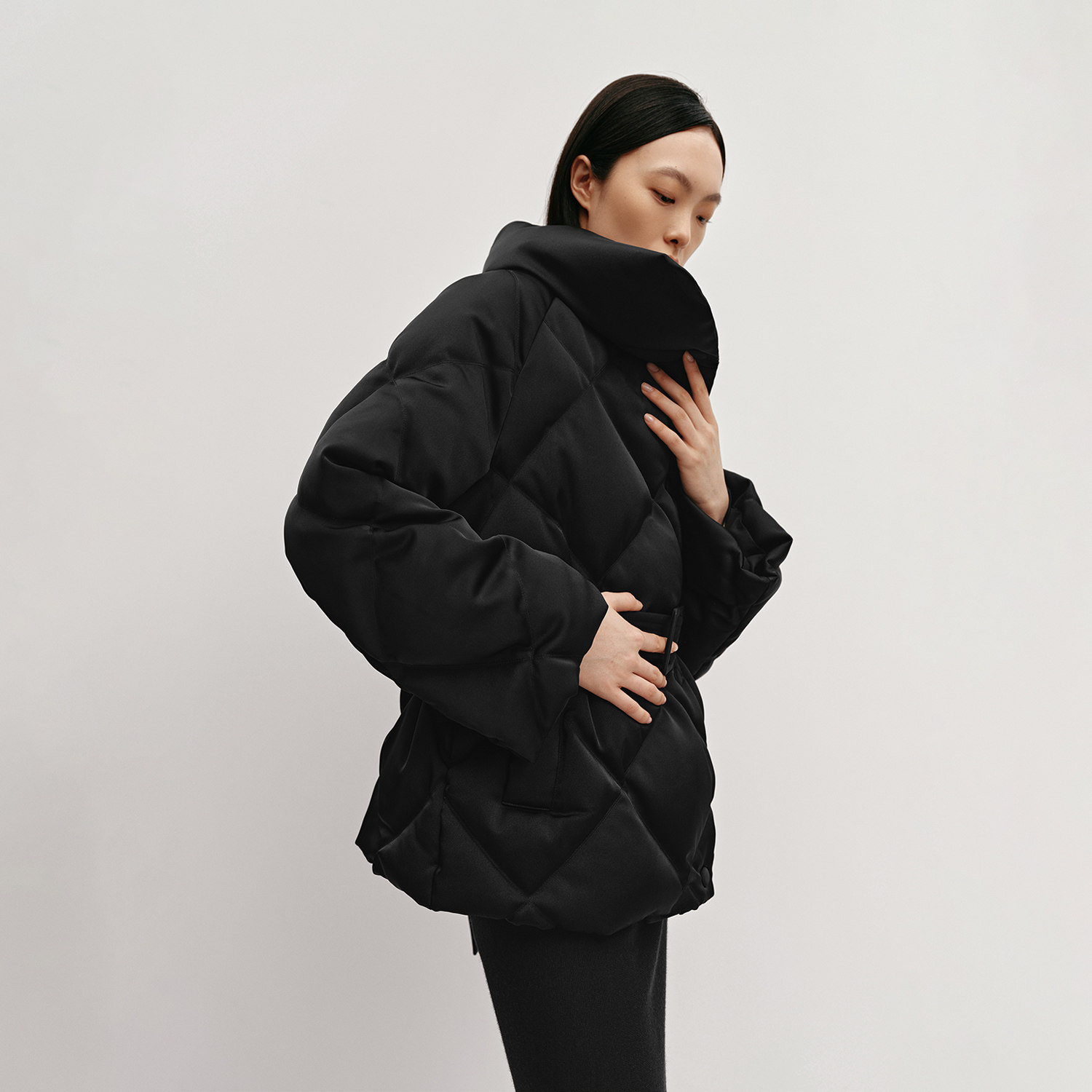 光泽感菱形格立领直筒休闲羽绒服 女装 OVVOutlet秋冬热卖 新款
