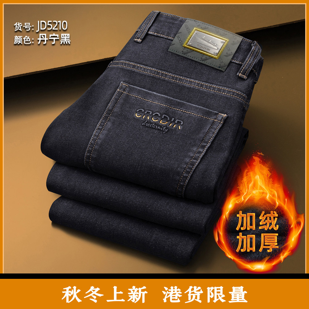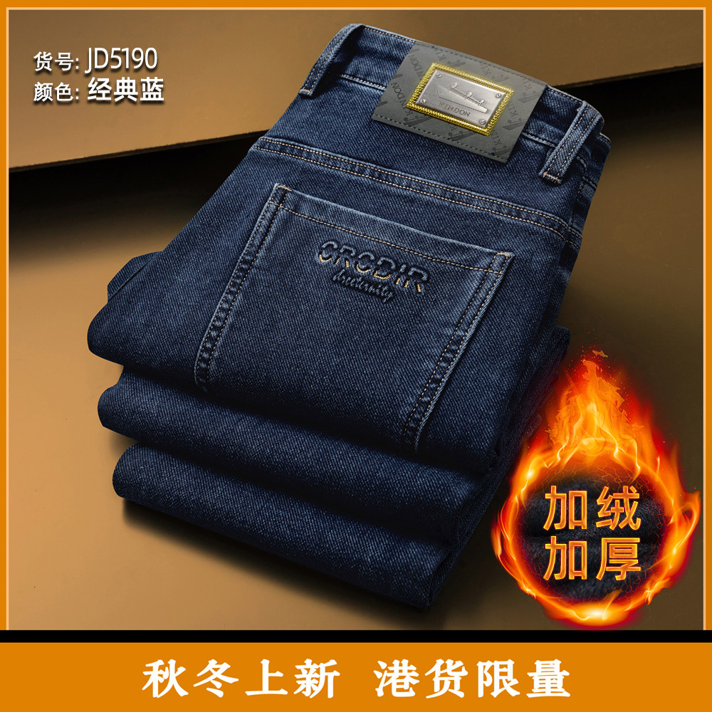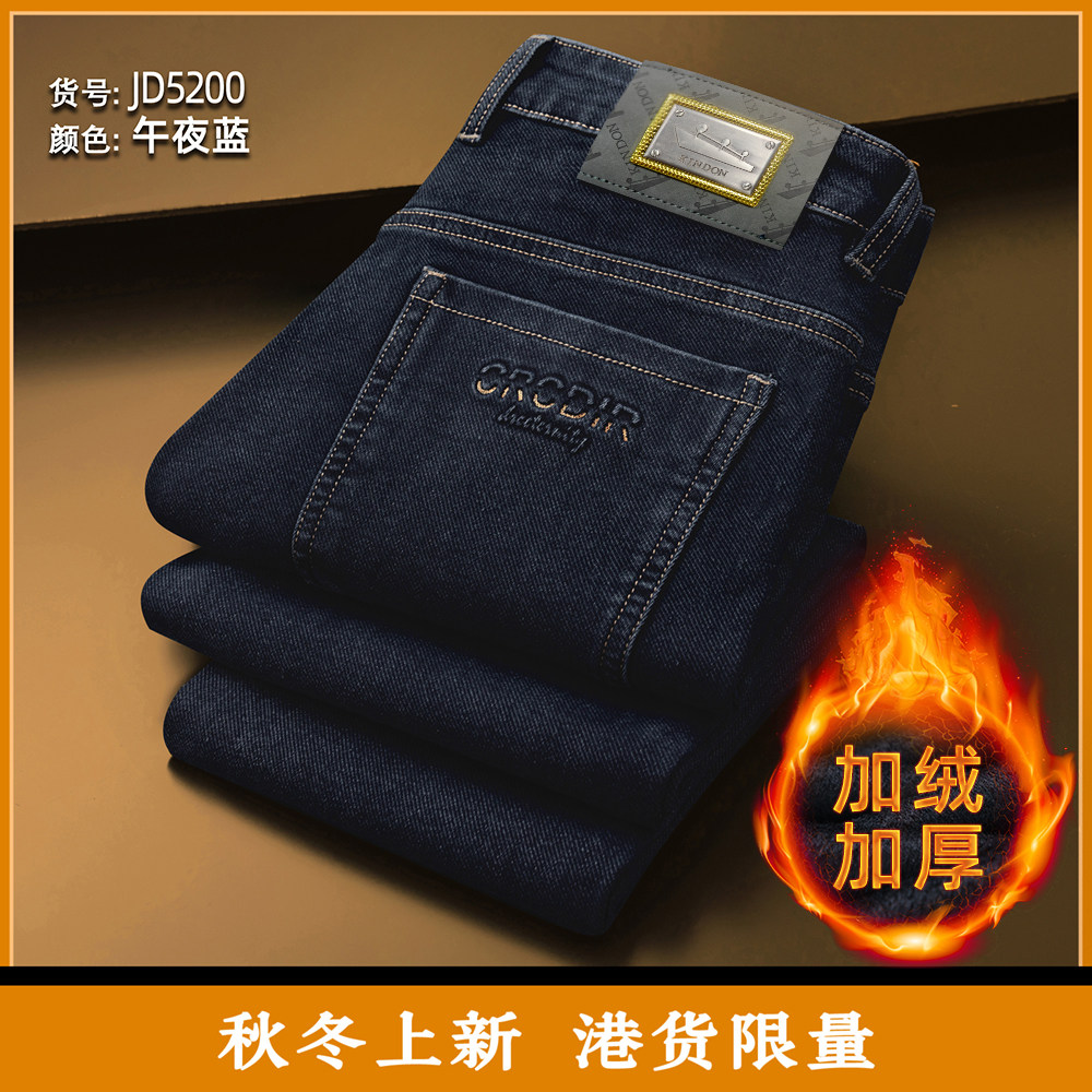 2024新款 宽松加绒加厚弹力长裤 男士 高腰直筒男裤 秋冬款 金盾牛仔裤