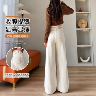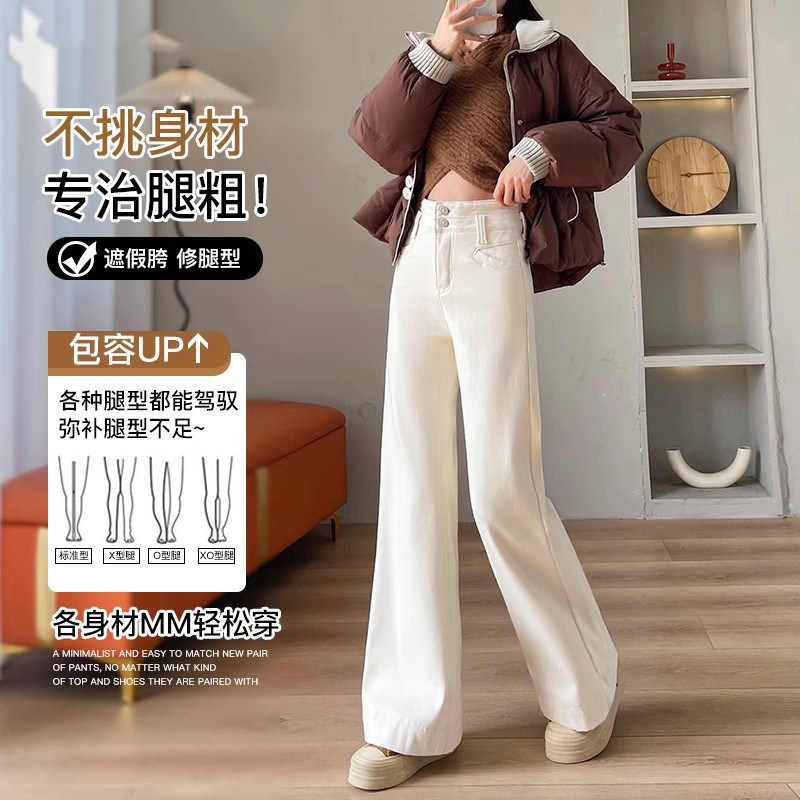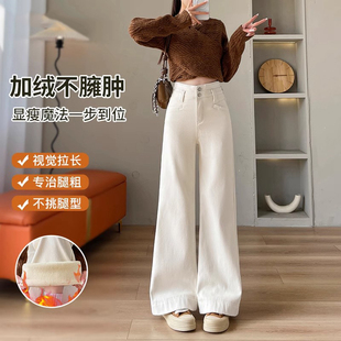 宽松休闲百搭显瘦白色阔腿喇叭裤 2025新款 女秋冬季 加绒微喇牛仔裤