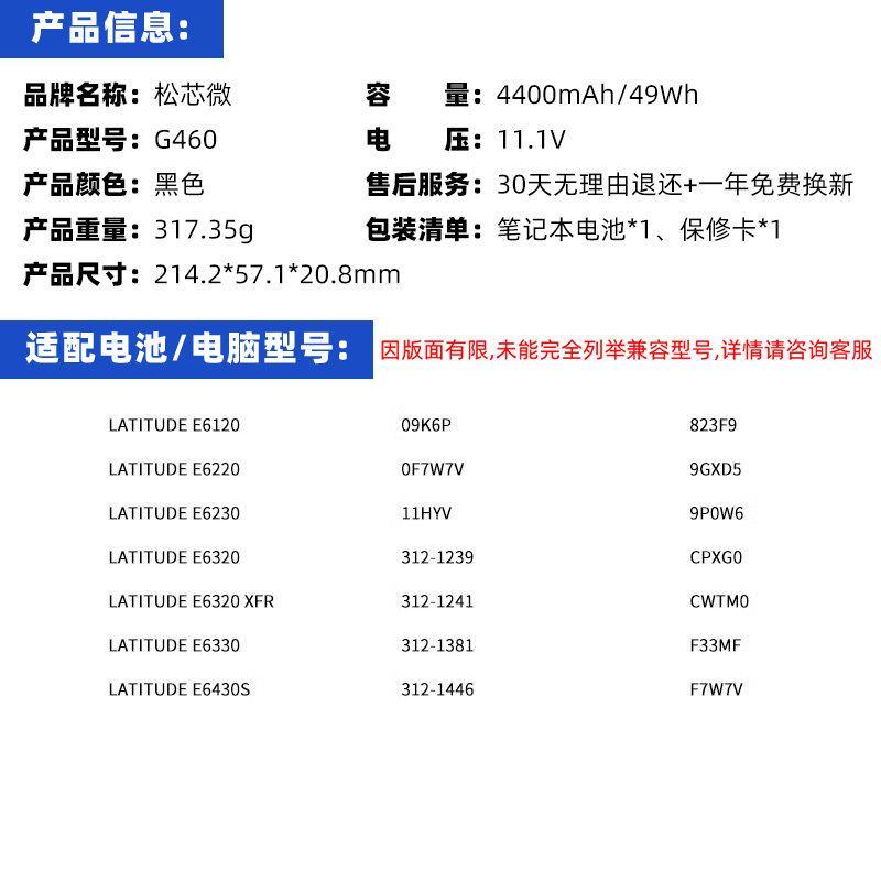 E6330 E6320 E6430S E6120 FRR0G笔记本电脑电池 适用于戴尔E6230电池 7FF1K E6220