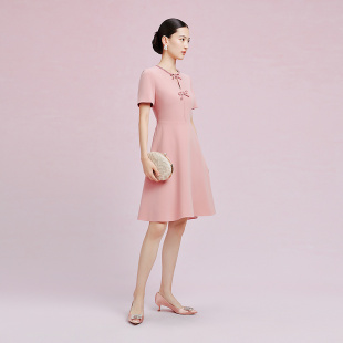 裙 洋装 Koradior拉珂蒂新款 礼服裙a字连衣裙 圆领短袖 法式