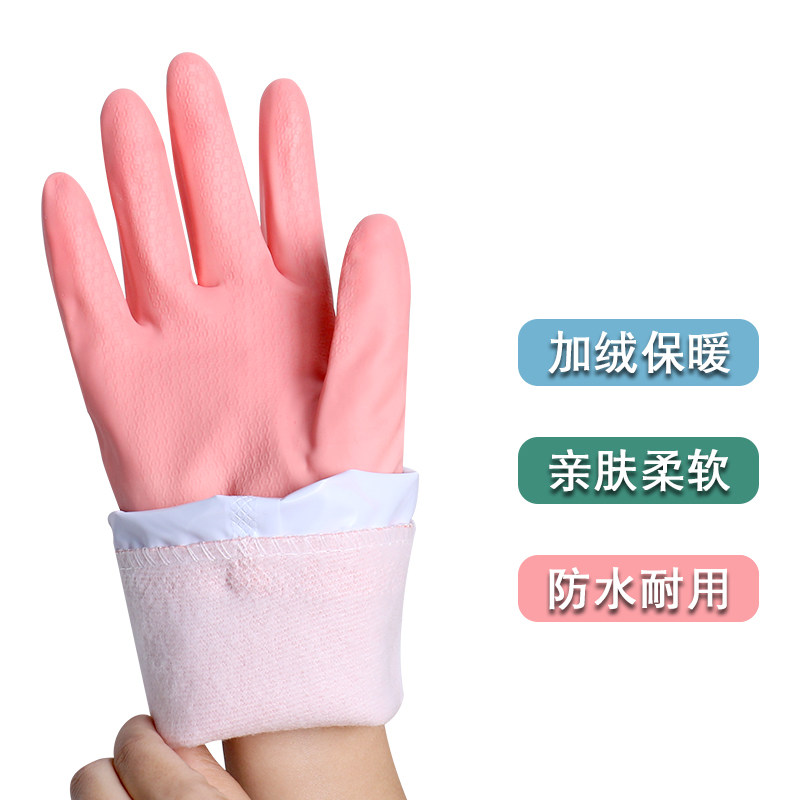 厨房女防水橡胶胶皮加厚洗衣服冬季 耐磨耐用加绒家务乳胶洗碗手套
