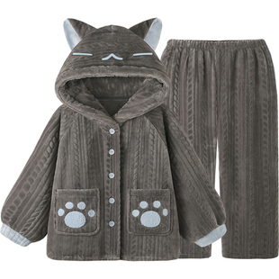 〖乌云猫〗日系卡通小猫睡衣秋冬款 加厚法兰绒家居服套 女2025新款