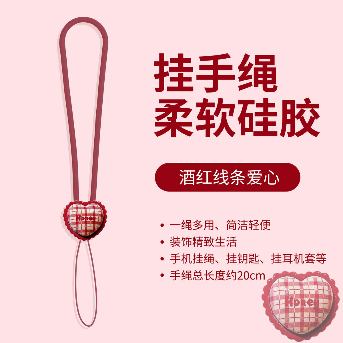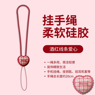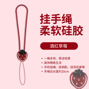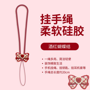 手机挂绳硅胶腕带短钥匙挂件u盘耳机ccd相机链饰酒红色高级女防丢