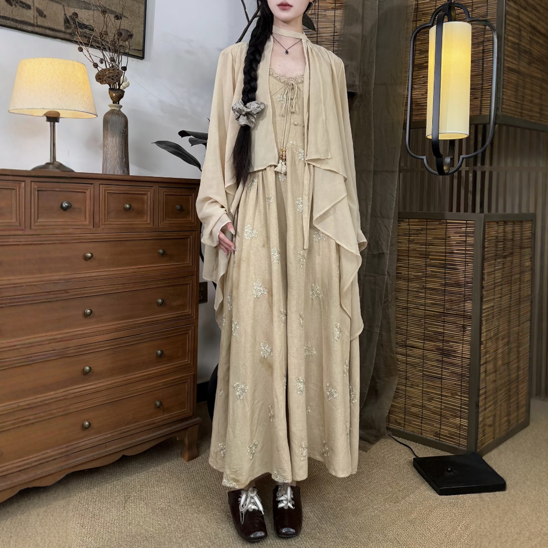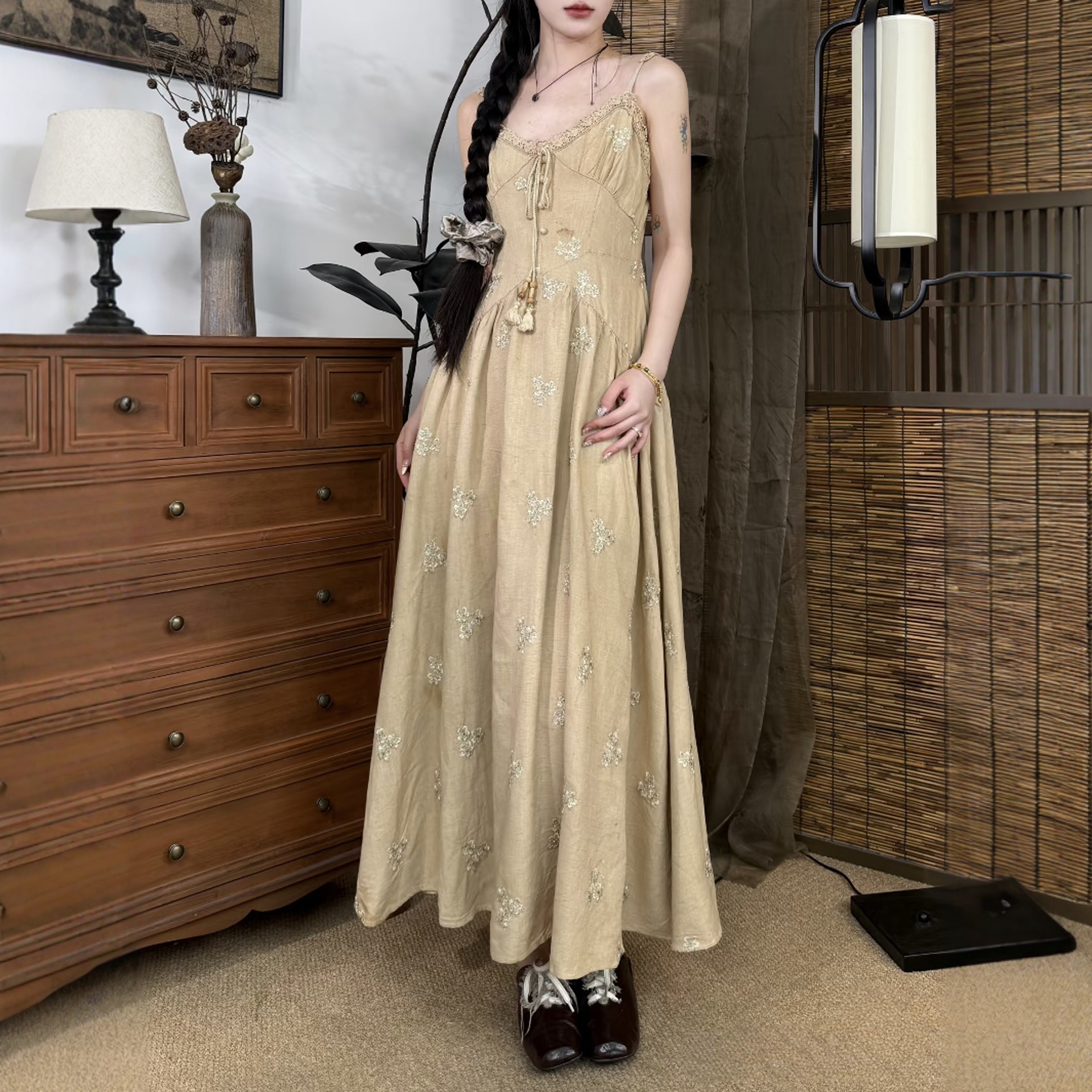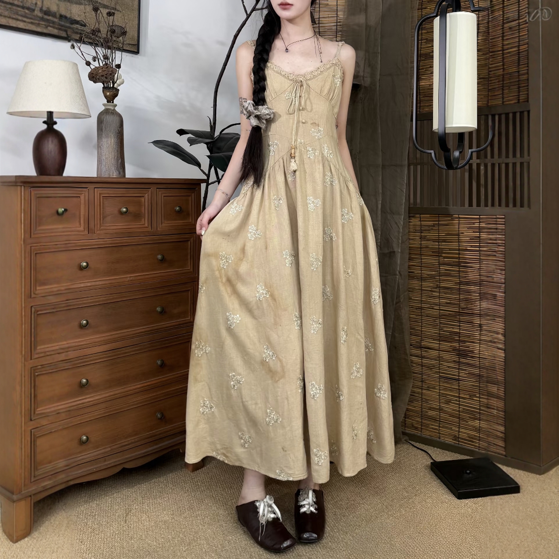 孤品「雨中生」非遗扎染新中式 碎花连衣裙 设计感吊带仙女长款