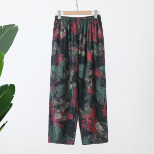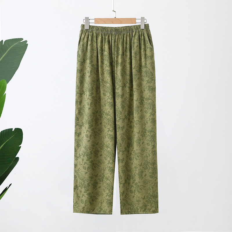 人造棉妈妈外穿九分裤 棉绸中老年直筒裤 宽松薄款 长裤 女高腰大码