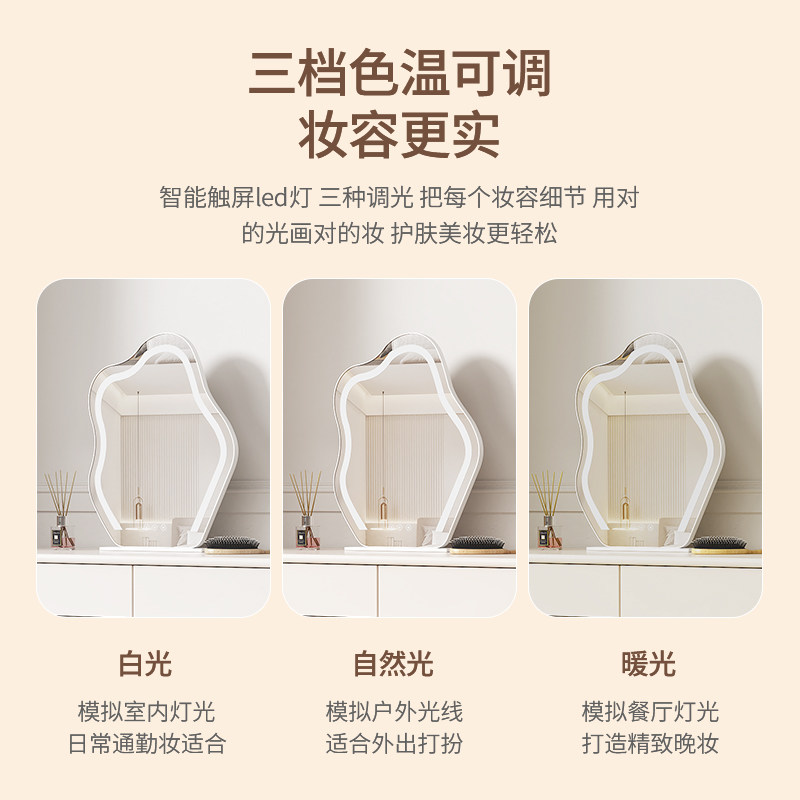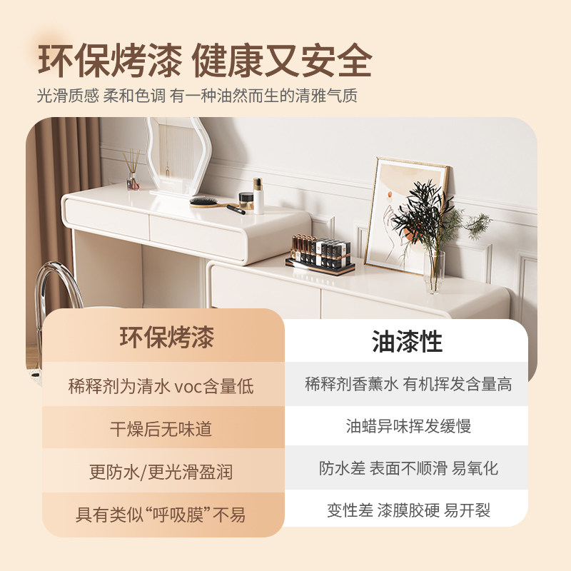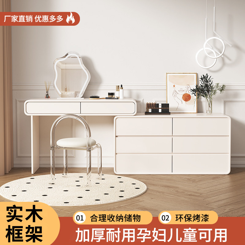 实木梳妆台卧室简约现代奶油风轻奢化妆台斗柜一体2025新款 化妆桌