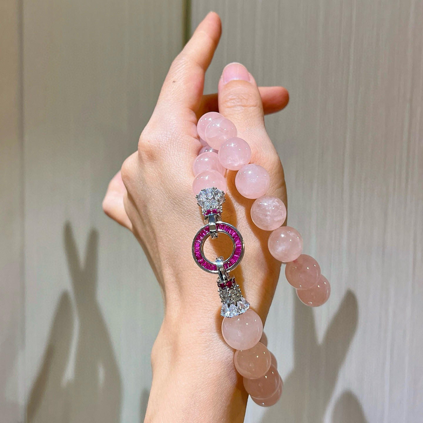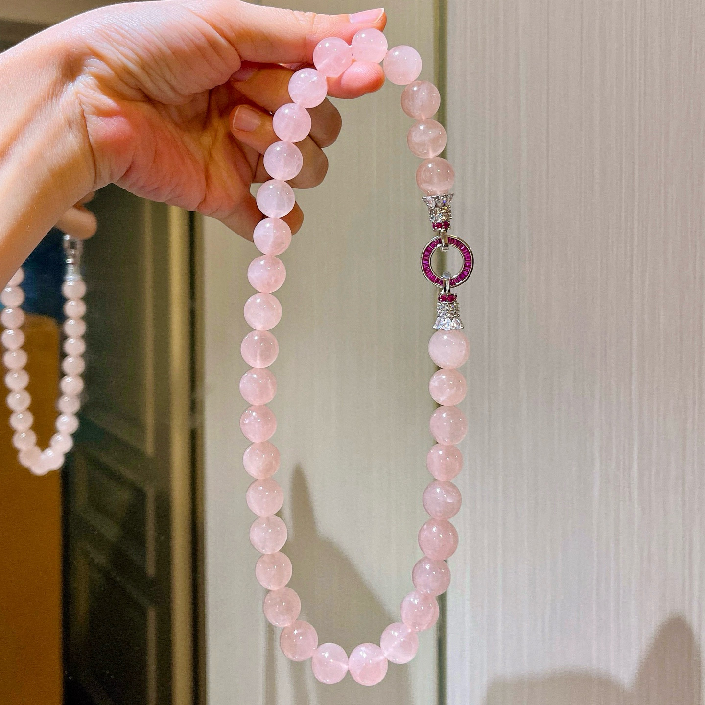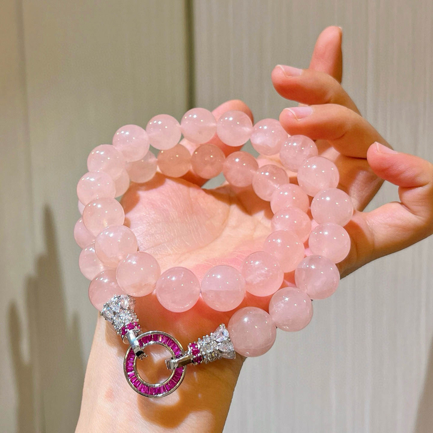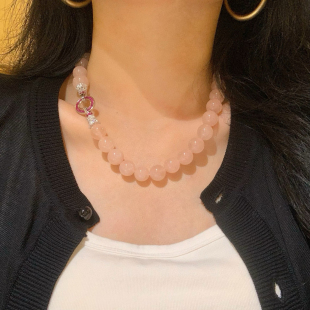 12mm大颗马达加斯加天然粉水晶项链女款 锁骨链粉晶手串显白招桃花