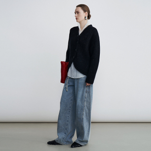 Marisfrolg玛丝菲尔蓝色设计感小众宽松阔腿牛仔裤 装 女 松弛裤