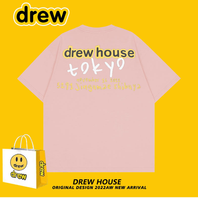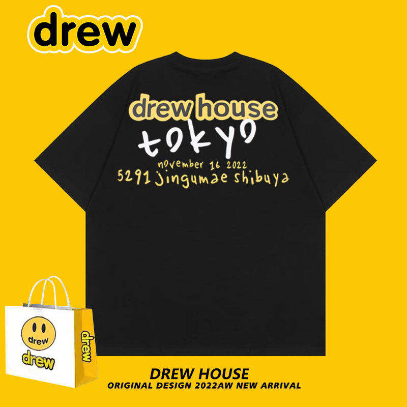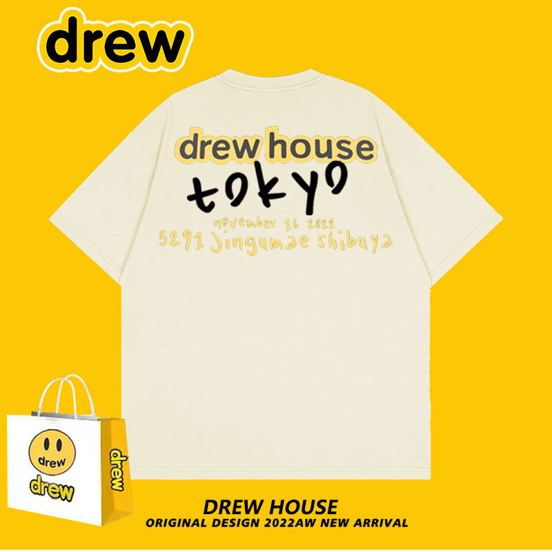 短袖 情侣同款 T恤 潮牌男女宽松夏季 Drew笑脸日本东京快闪限定美式