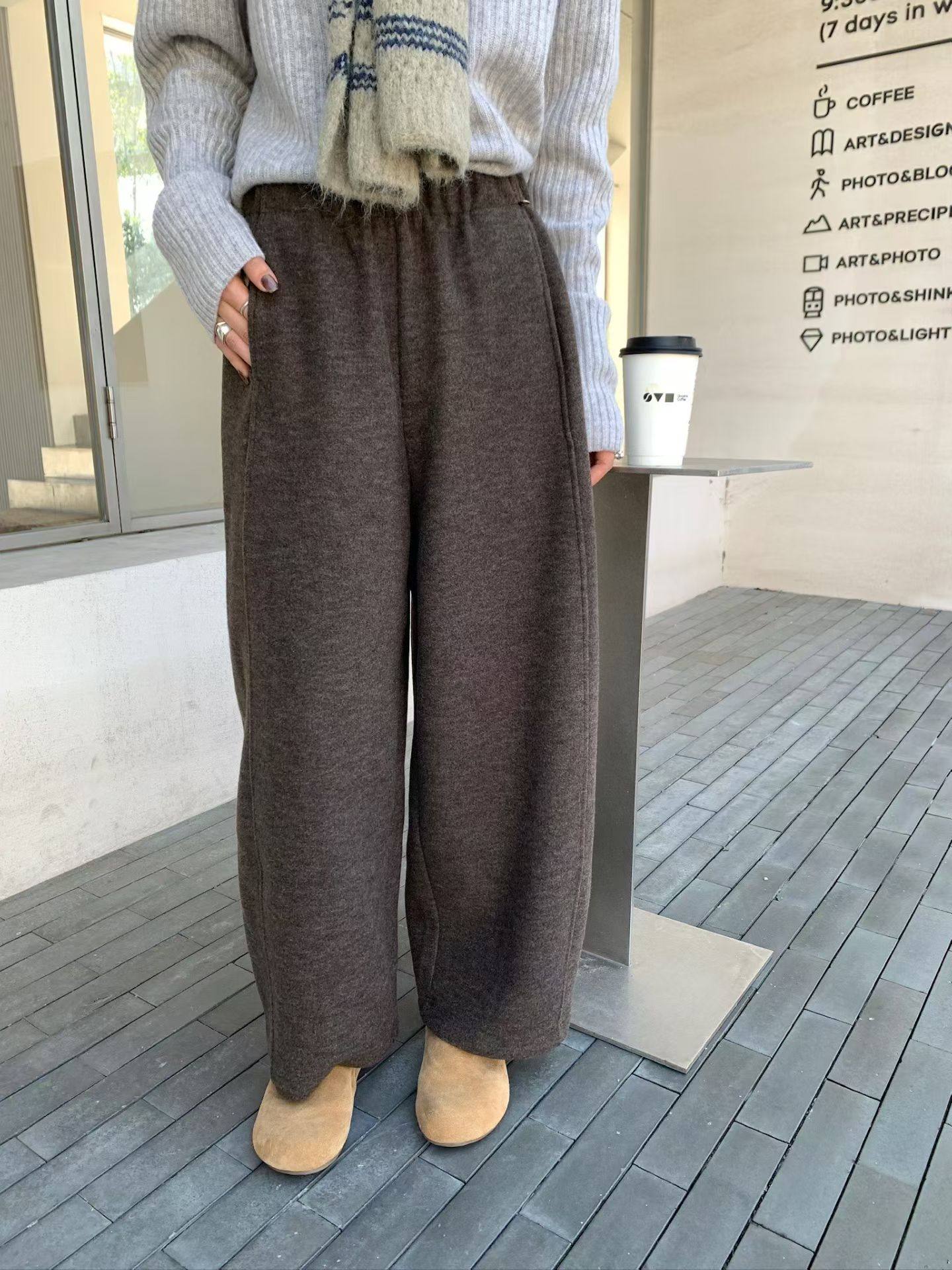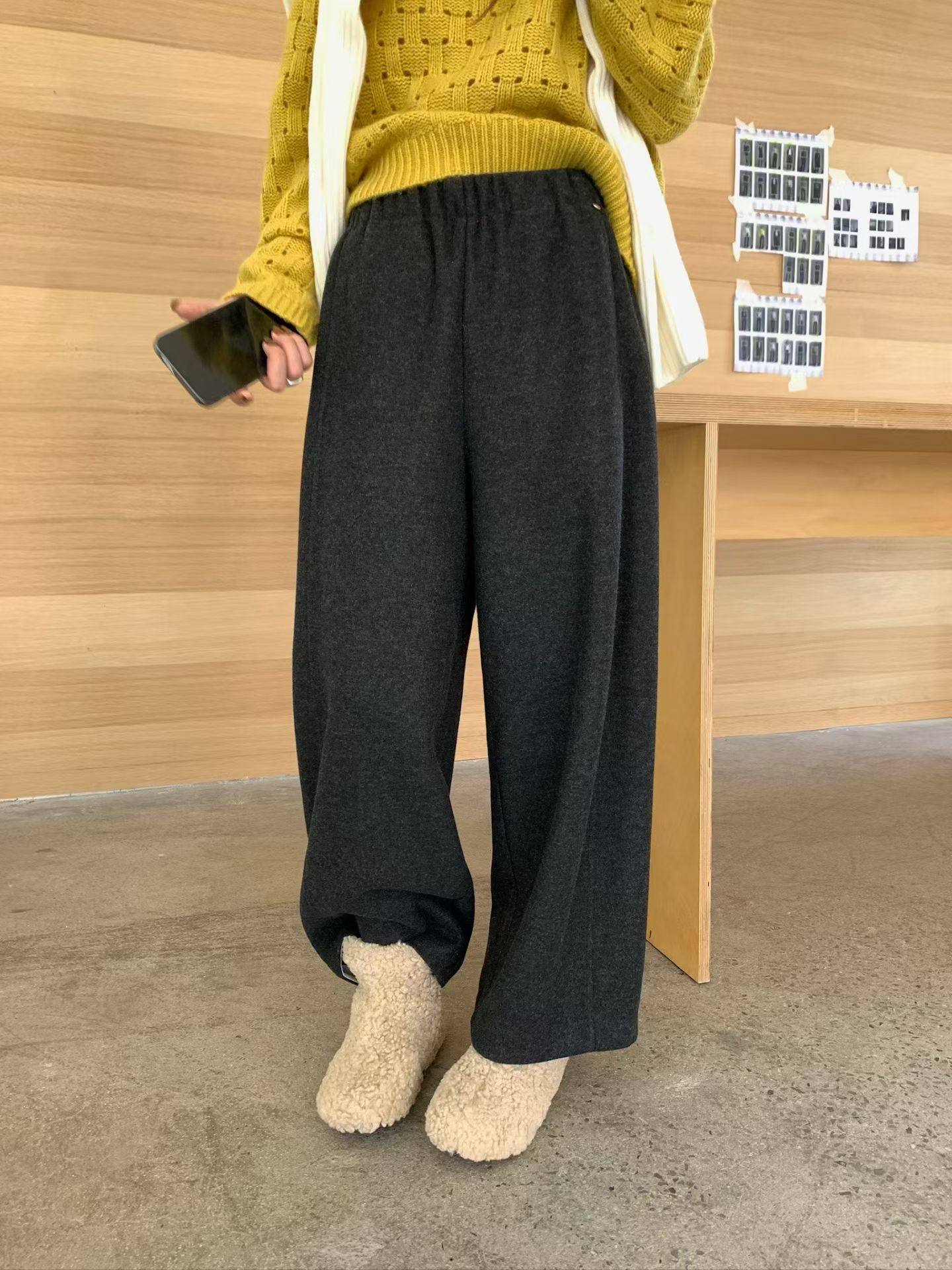 呢子裤 松紧腰显瘦百搭休闲裤 加绒加厚九分裤 媛可儿秋冬新款