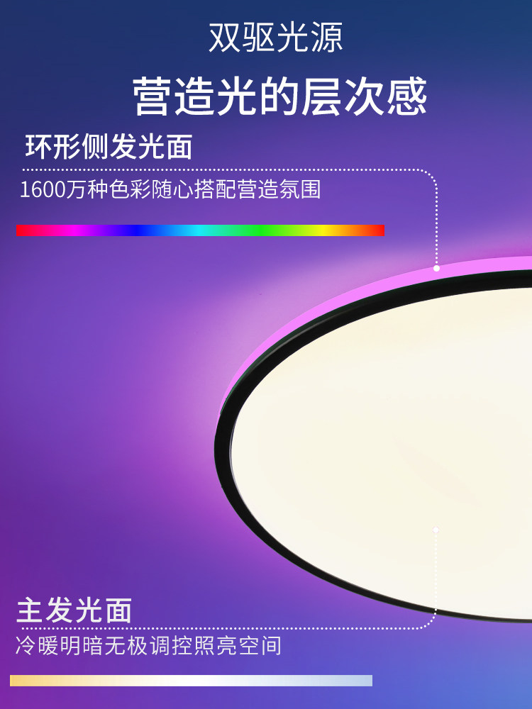 飞利浦智能卧室吸顶灯现代简约彩光超薄lled护眼极简调光rune