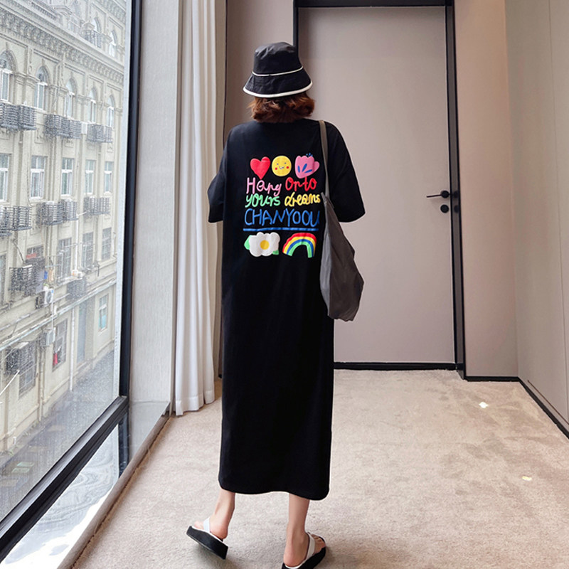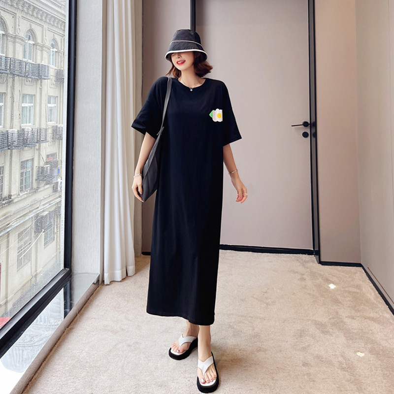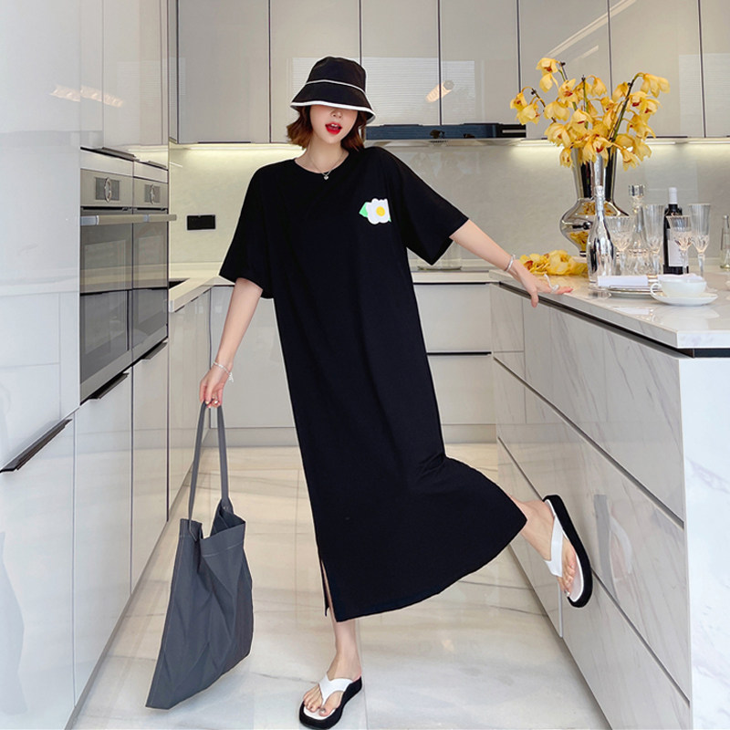 纯棉懒人t恤裙大码 短袖 200斤女装 新款 长裙子夏 2026夏季 胖妹妹夏装
