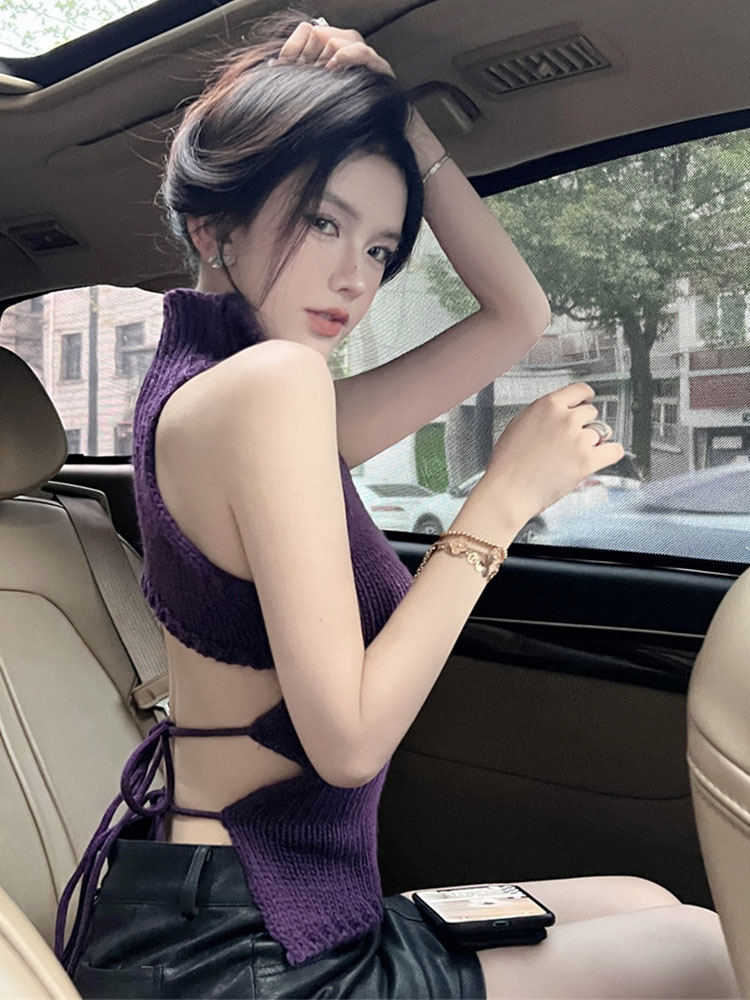上衣外穿蕾丝毛衣 短款 网纱半高领针织小吊带背心女内搭打底衫 无袖