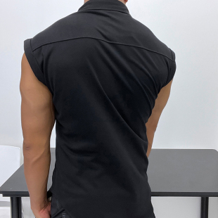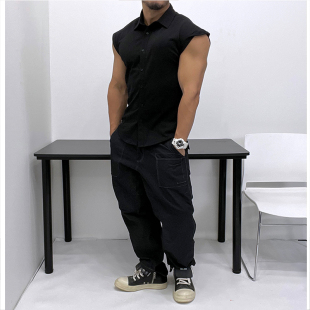 优良成衣宽松微廓显瘦无袖 纯色全棉好面料衬衣休闲潮男时髦 衬衫
