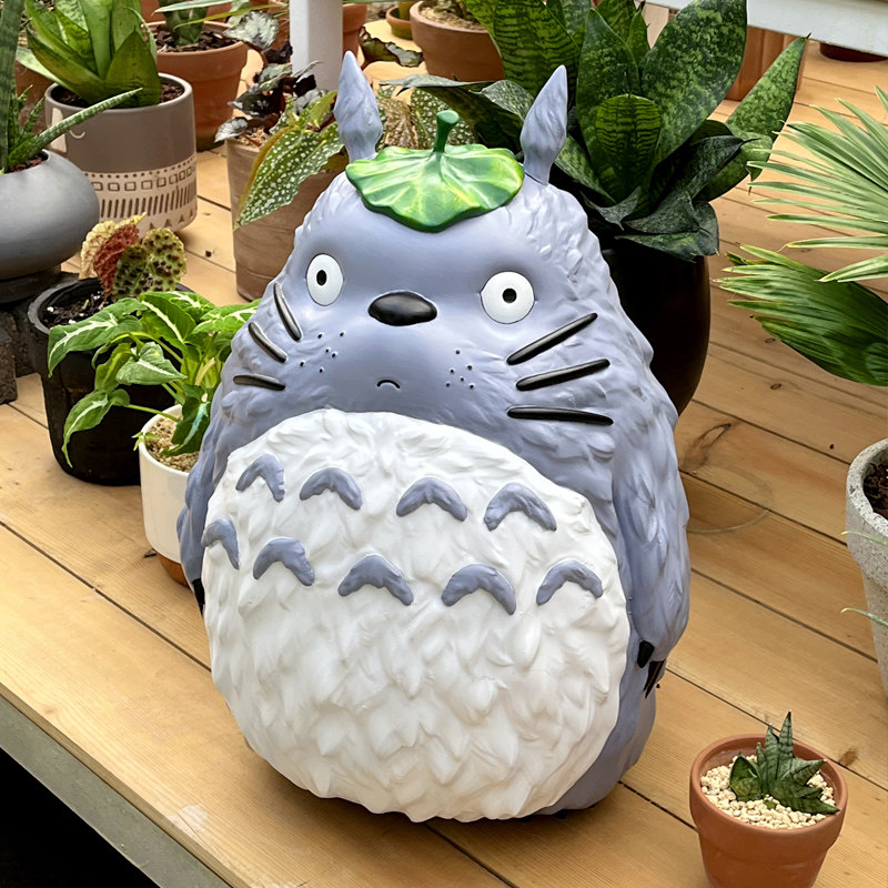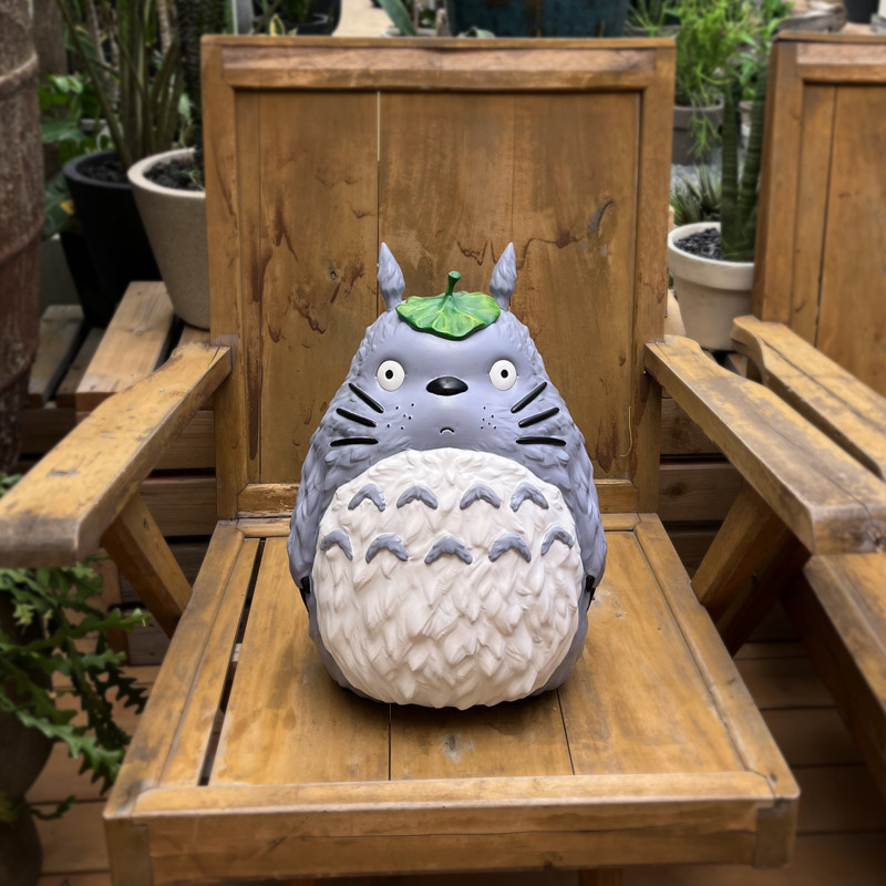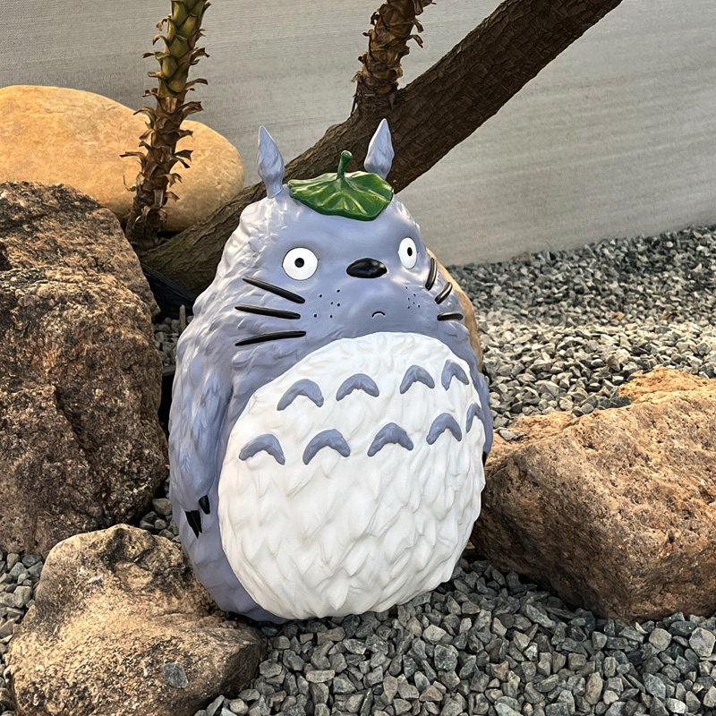 治愈系卡通42厘米高龙猫遮叶花园草坪造景摆件庭院阳台树脂装 饰品