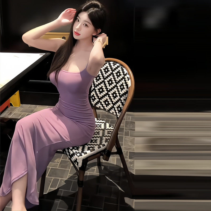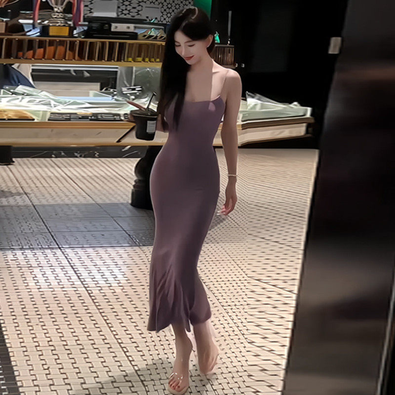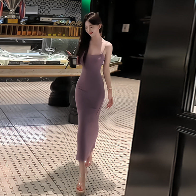 性感夜店辣妹紫色吊带连衣裙女夏2026年新款 显瘦包臀气质长裙 修身