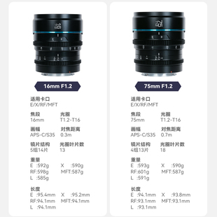 T1.2大光圈微单相机广角索尼镜头 75mm 思锐夜行者电影镜头套装
