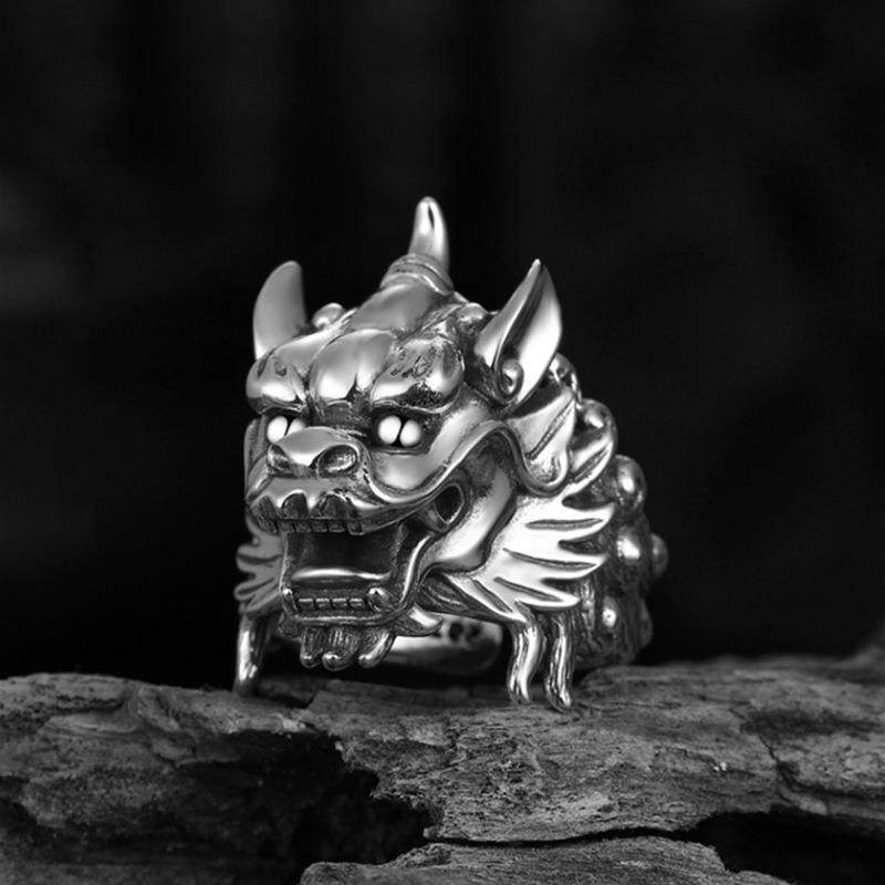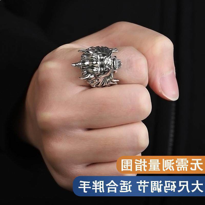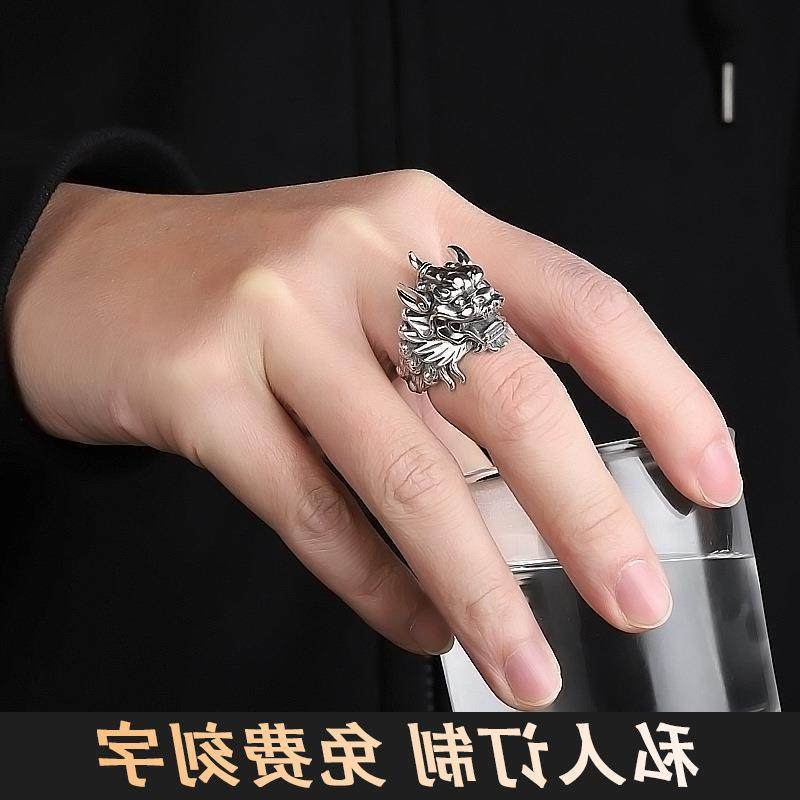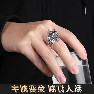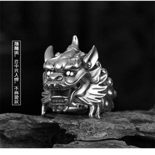 泰银麒麟男士 复古潮霸气獬豸神兽银头食指男戒银戒板指戒 戒指