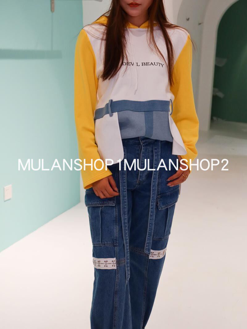 周直订 SJYP巴黎时装 秋冬AW银色补丁牛仔裤 清货折XSS