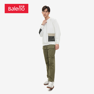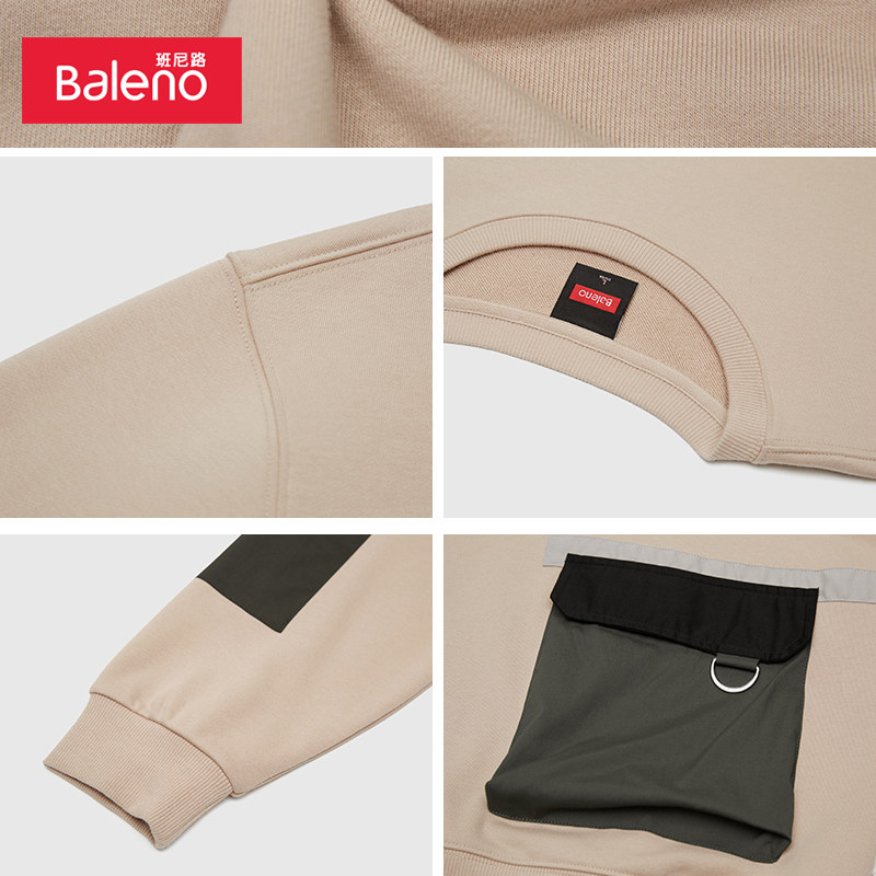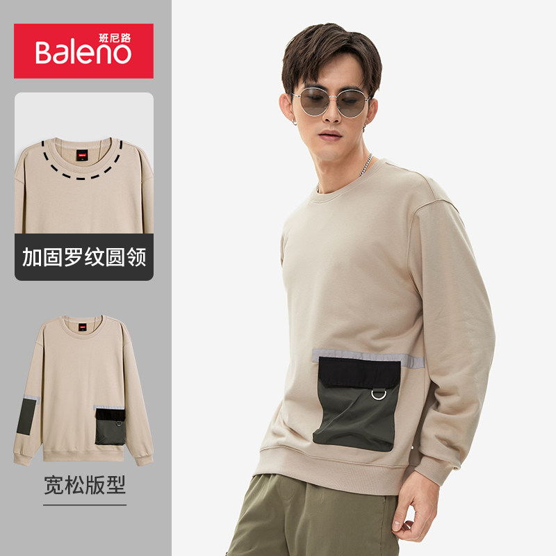 上衣休闲圆领梭织拼接秋装 班尼路男装 长袖 新品 外套卫衣男舒适 春季