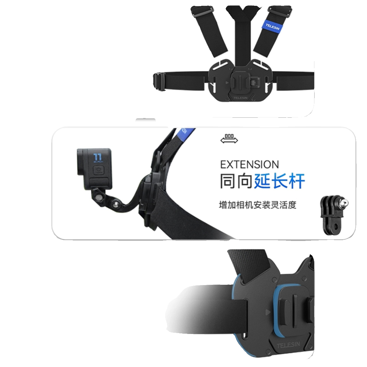 泰迅适用Gopro13 4运动相机胸带胸前固定支架 12胸带大疆action5