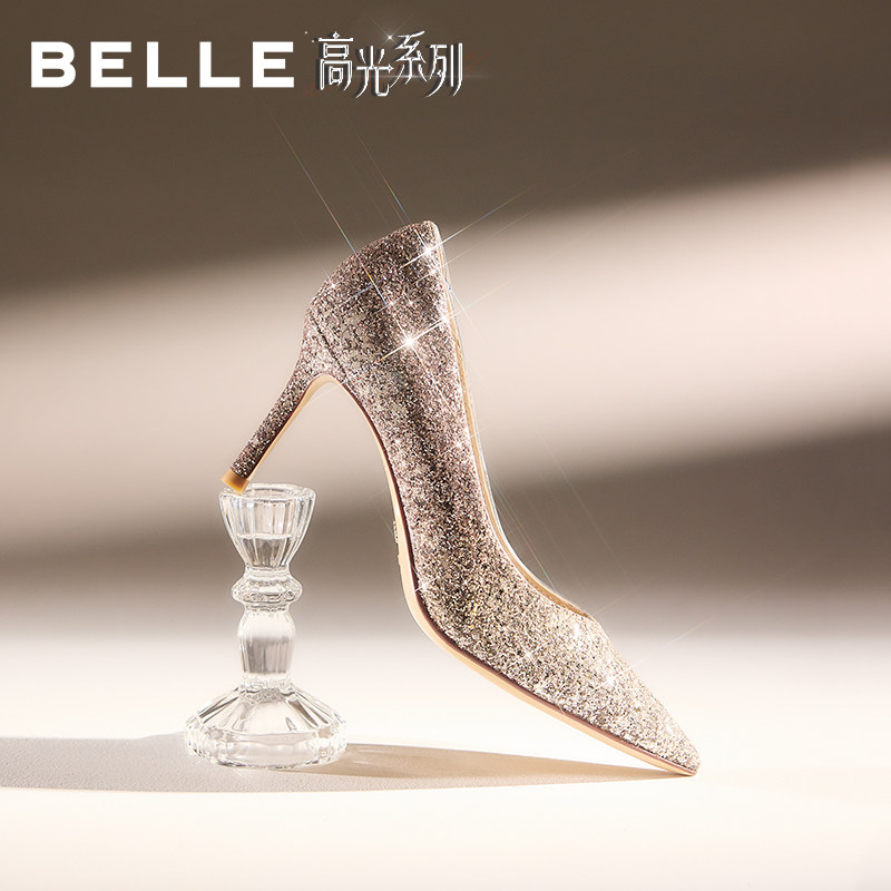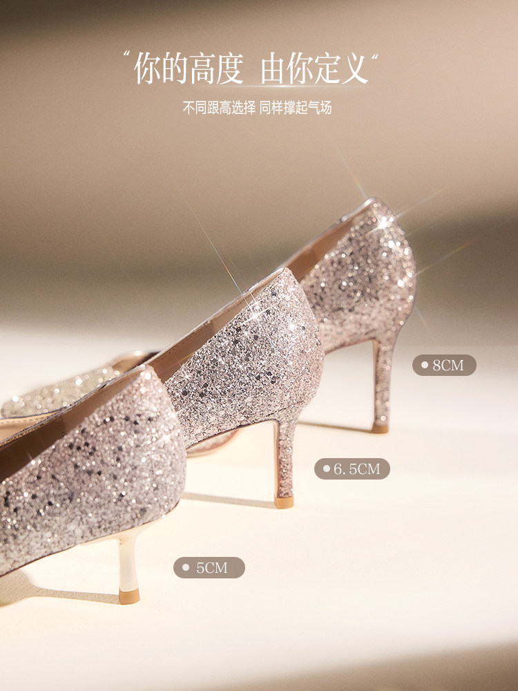 不累脚尖头女浅口单鞋 裸色高跟鞋 百思图25秋新款 婚鞋 大女主