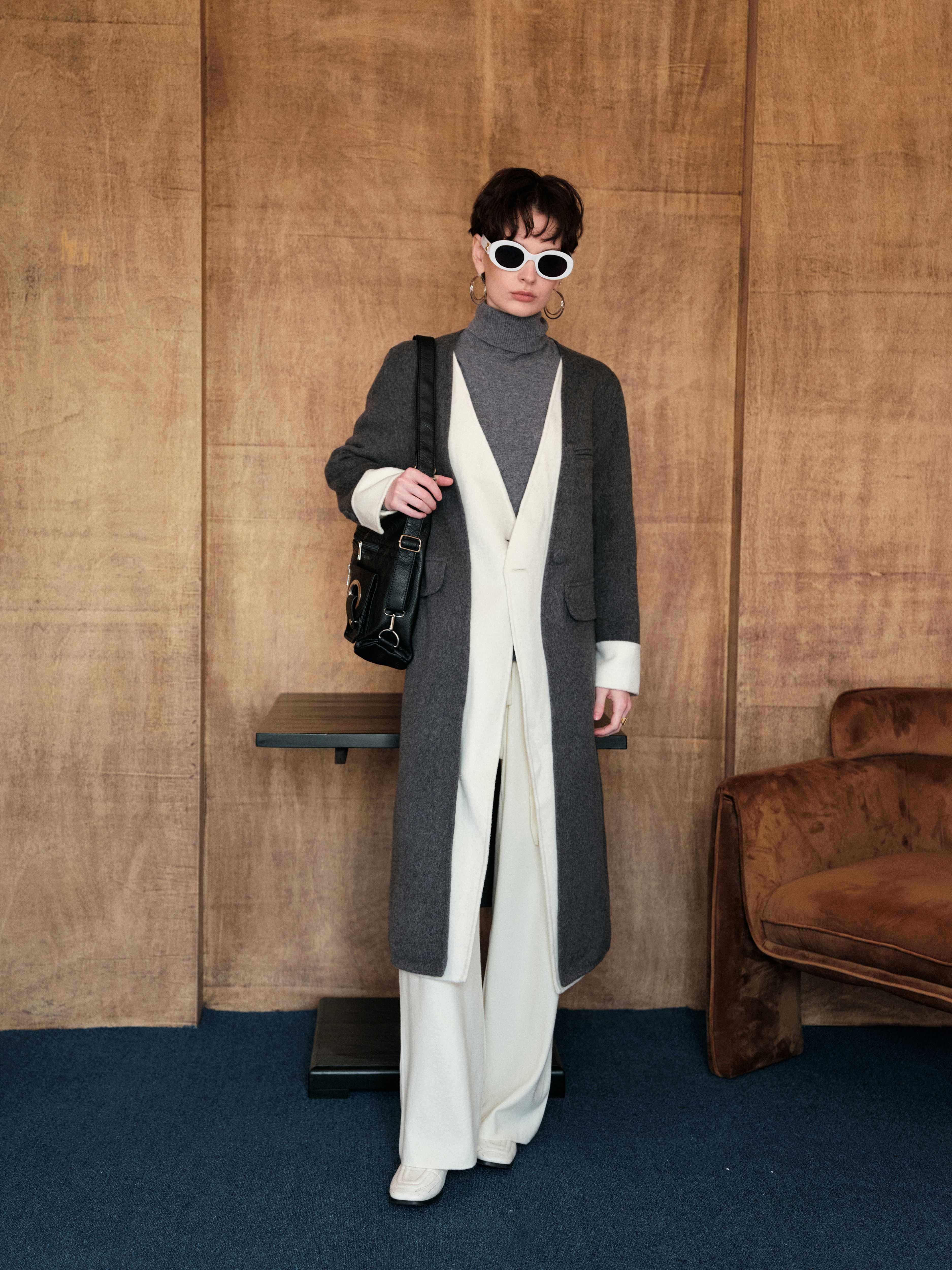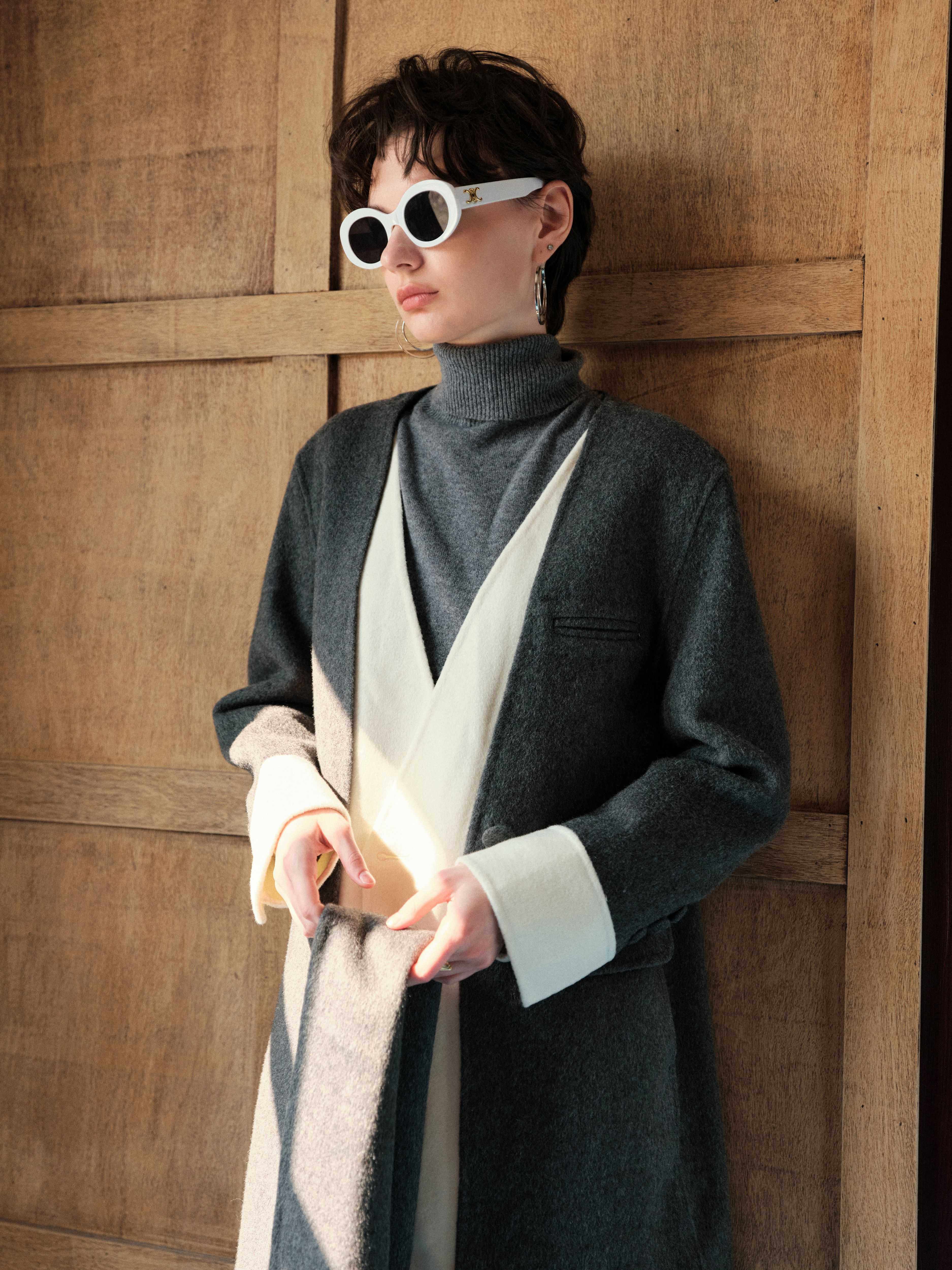 慵懒风双面羊毛大衣女中长款 灰色毛呢外套高级感