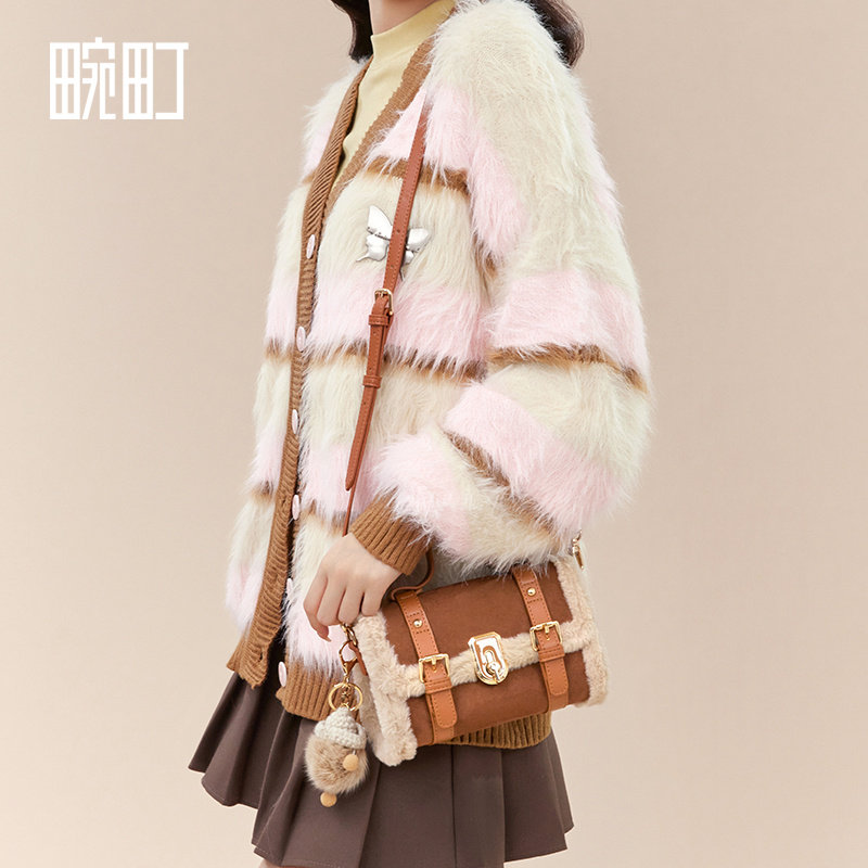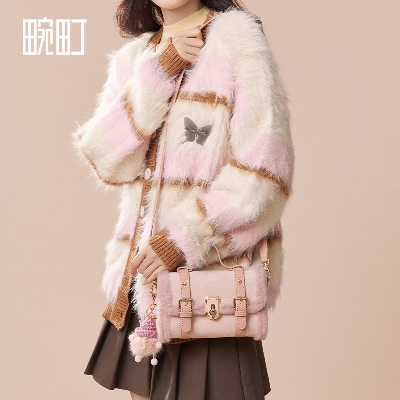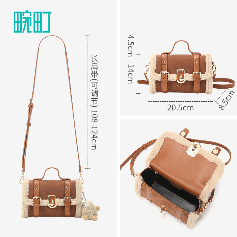 手提斜挎包 时尚 畹町美拉德毛绒小方包冬日暖阳剑桥包女秋冬季 新款