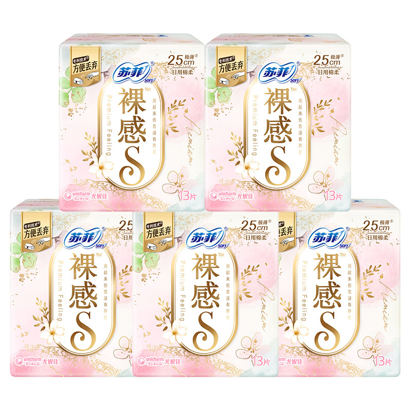 苏菲卫生巾裸感S日用250mm极薄纯棉姨妈女组合装 整箱批发官方正品