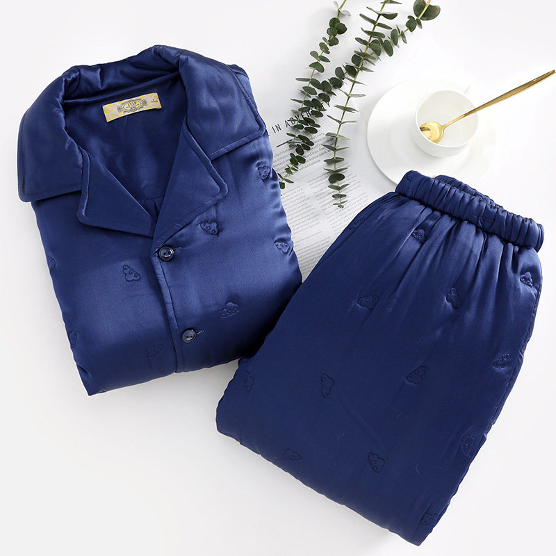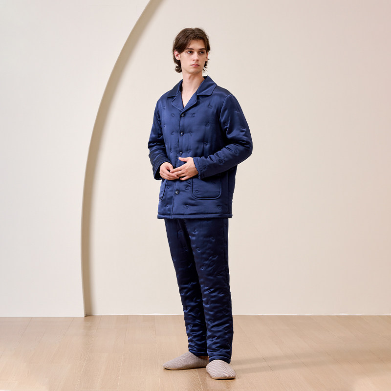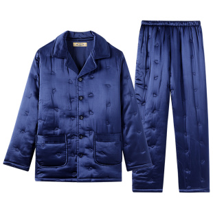 保暖丝绸桑蚕丝居家可外穿 秋冬季 美标男新款 真丝夹棉睡衣套装