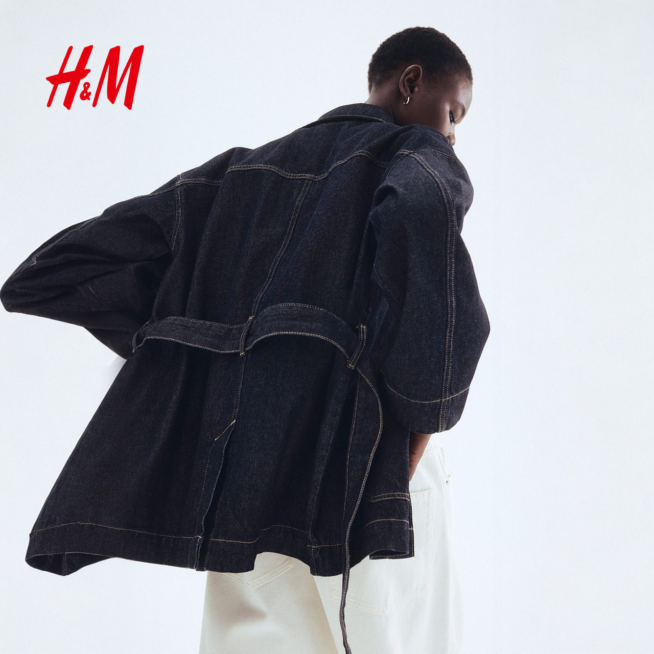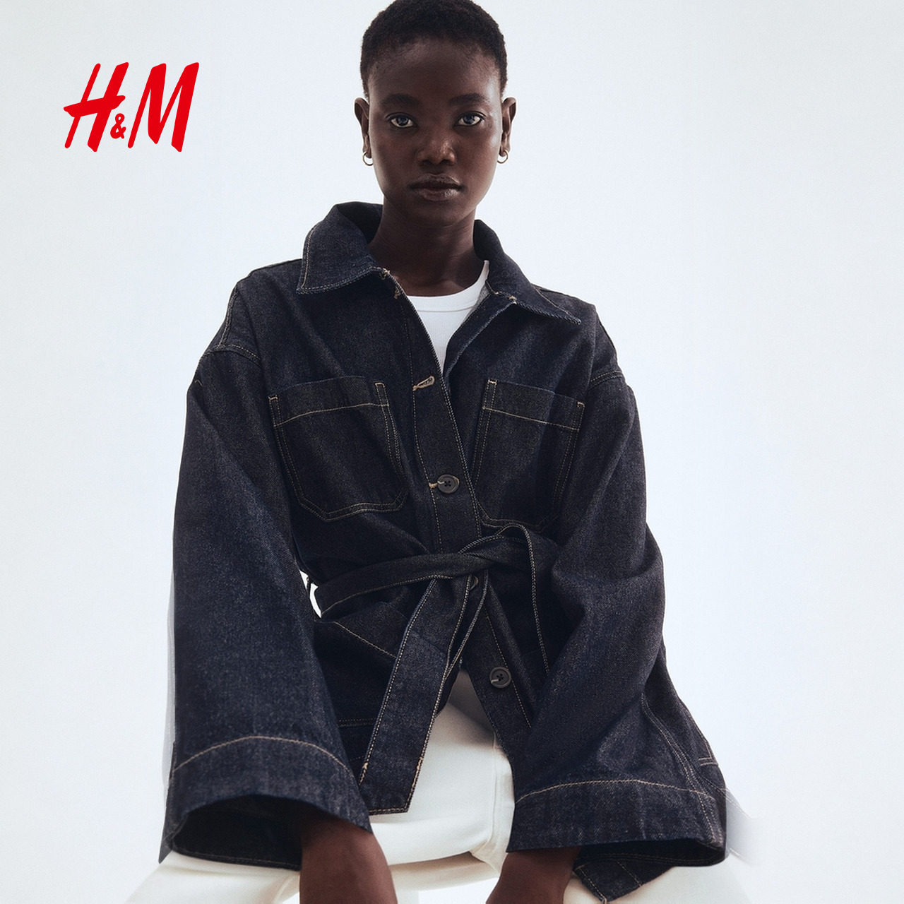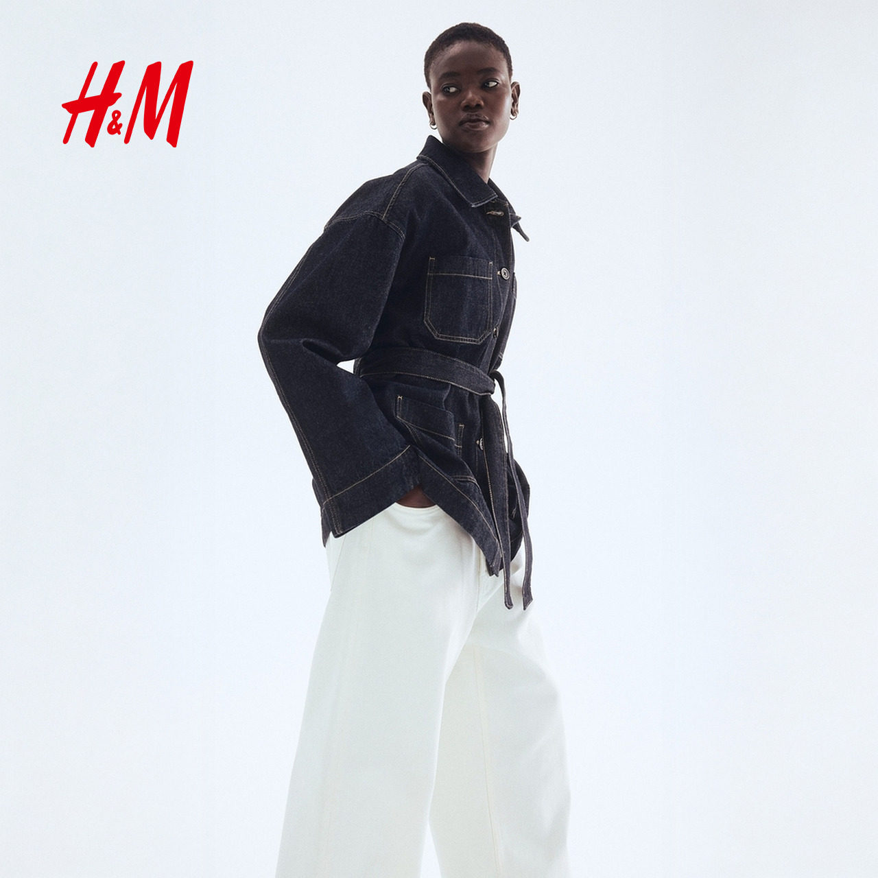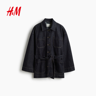 休闲腰部绑带牛仔外套1299027 时尚 HM女装 短外套春季