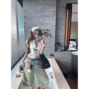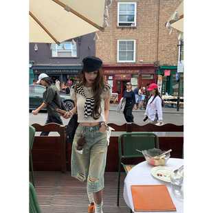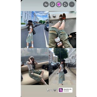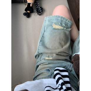 七分裤 Xinlei 破洞泥染宽松直筒水洗牛仔中裤 英区Boyish Lin