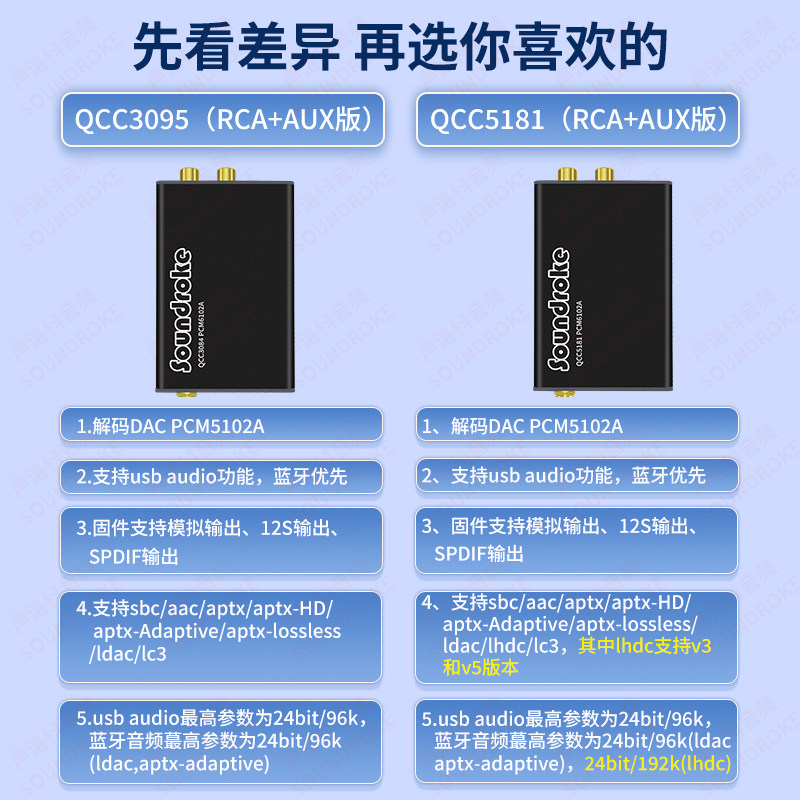 QCC5181蓝牙解码 升级功放旧音箱DIY 器支持LDAC低延时LHDC车载改装