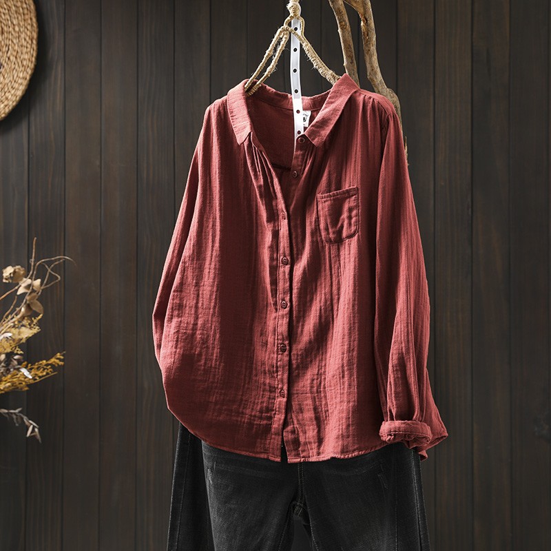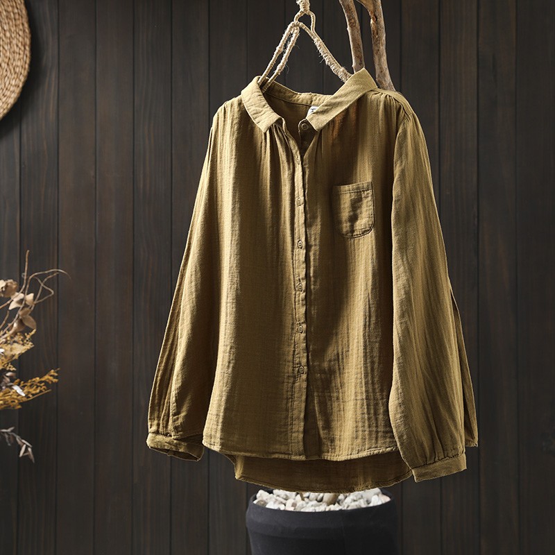 早秋款 今年流行爆款 双层棉纱长袖 女大码 小衫 减龄休闲衬衫 2025新款