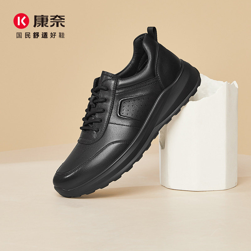 男真皮软面系带办公室百搭爸爸鞋 奥康男鞋 商务休闲皮鞋 时尚 春秋季