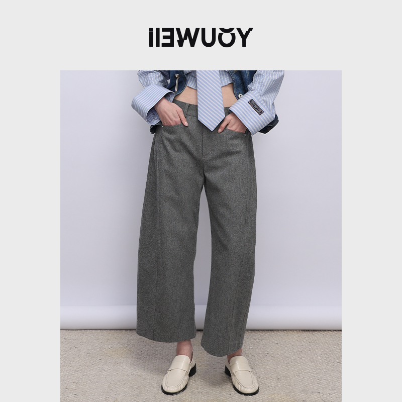 胖妹妹显瘦垂感休闲裤 格雷系黑灰撞色阔腿慵懒风格 大码 女秋季 子裤