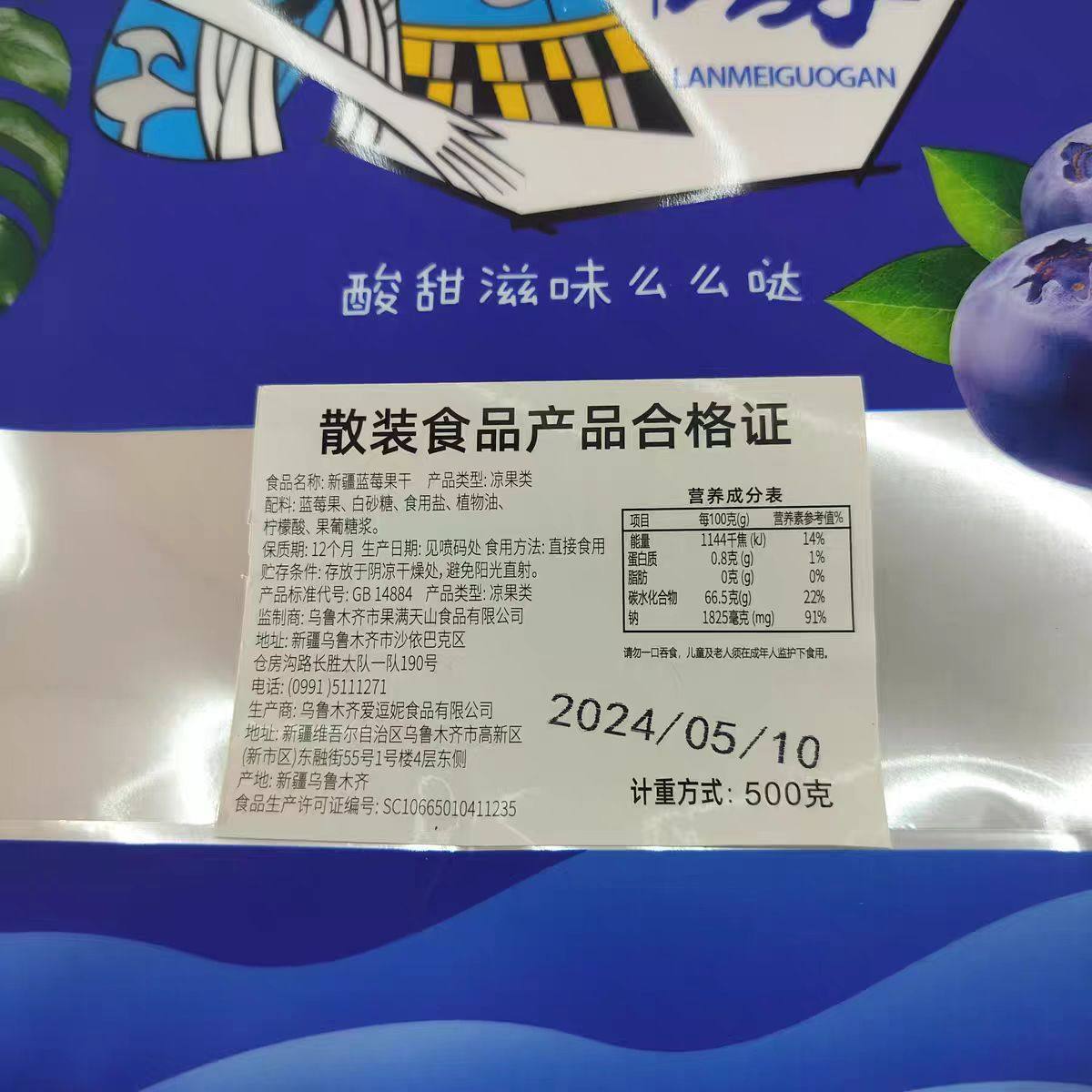 新疆特产果满天山蓝莓果干500g独立包装 休闲零食