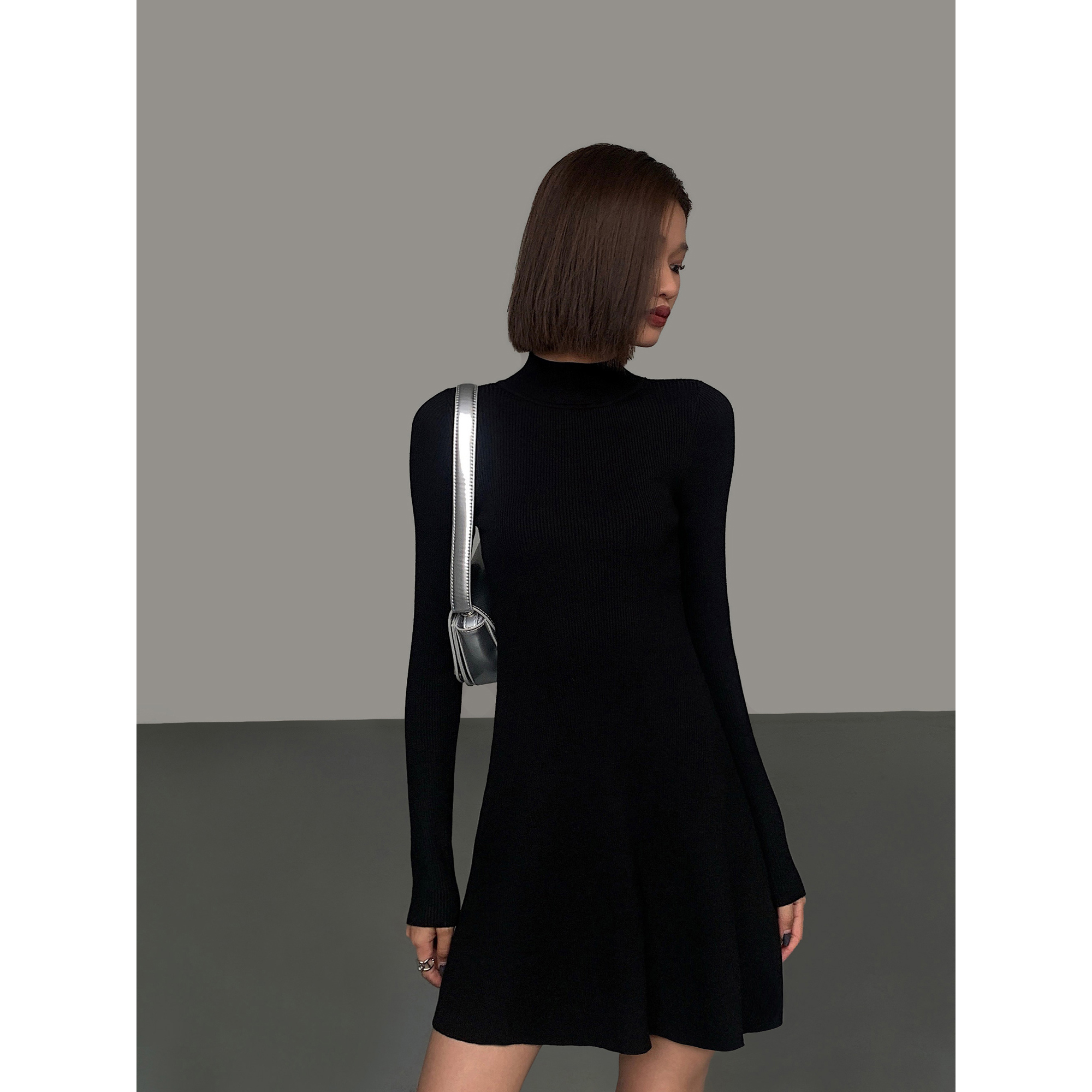 气质法式 修身 A字短裙子 连衣裙女秋收腰新款 ousph小黑色针织长袖