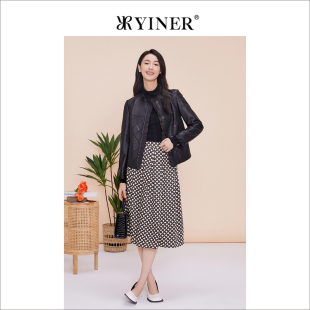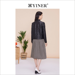 YINER音儿专选女装 菱格纹木耳花边绵羊真皮皮衣夹克外套 春季