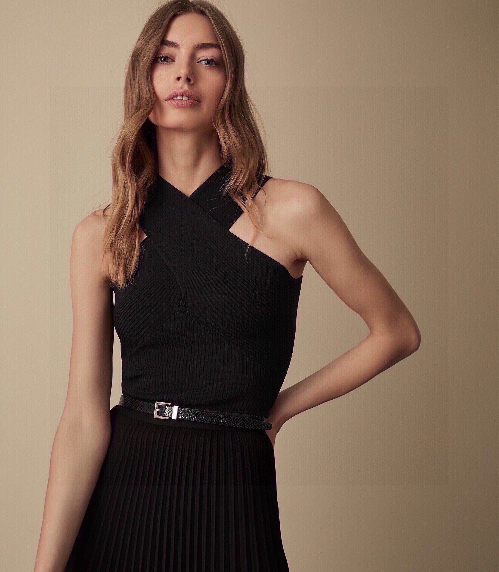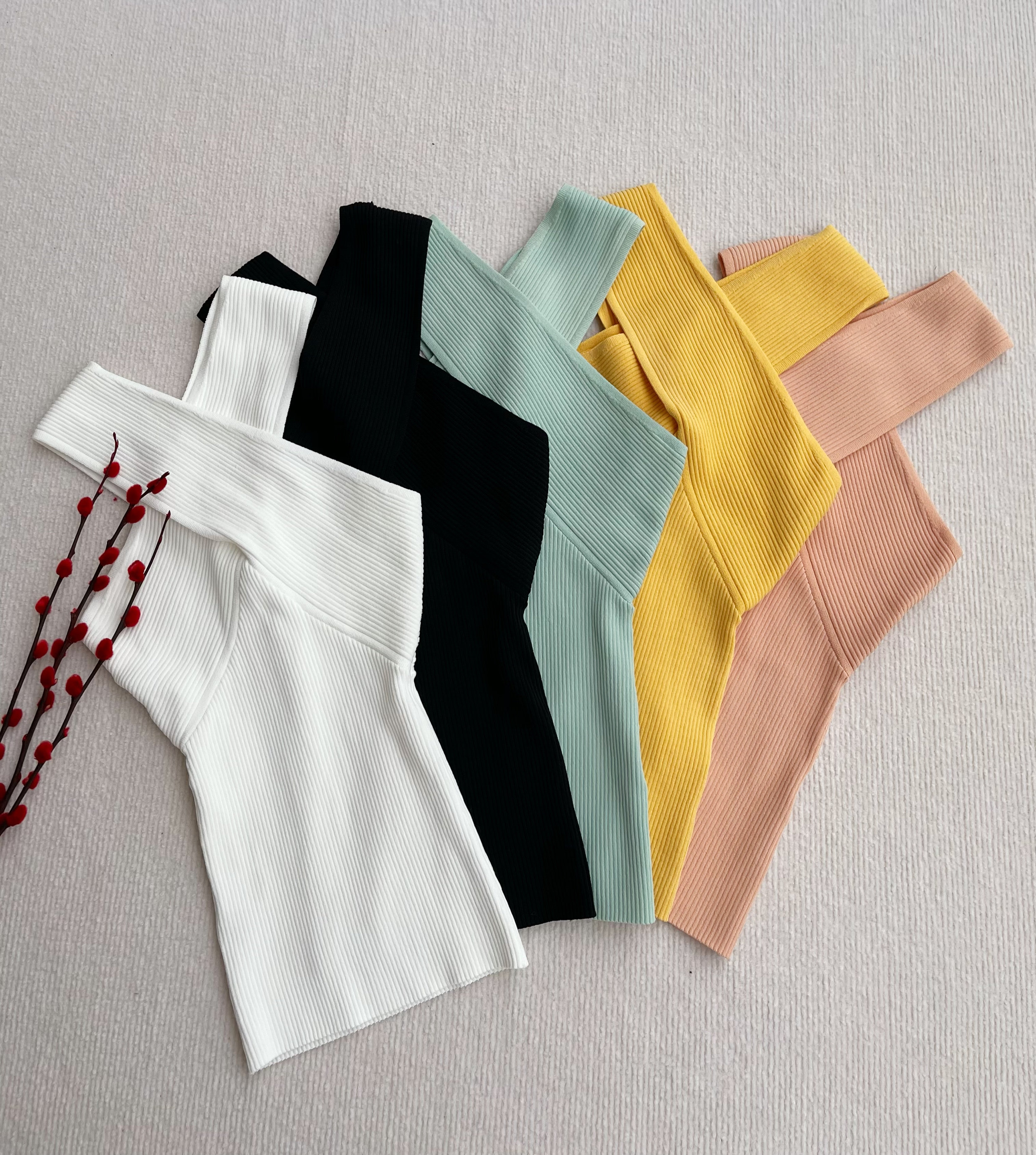 挂脖针织背心上衣 交叉一字肩 多种穿法 英国进口曲珠 Re外贸纯元