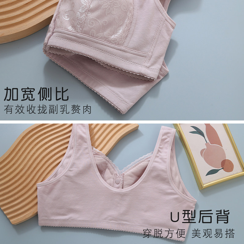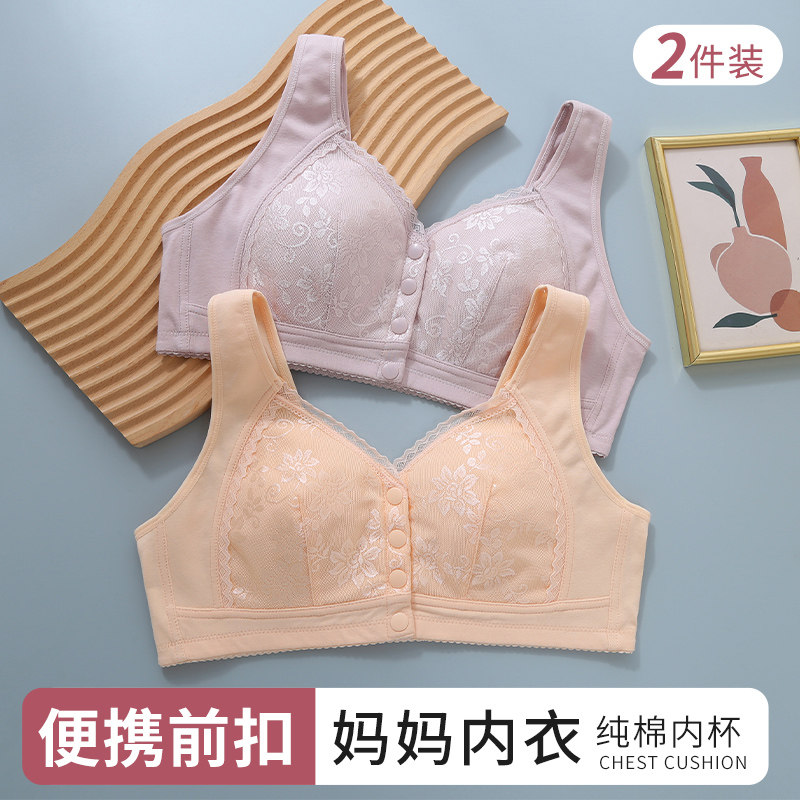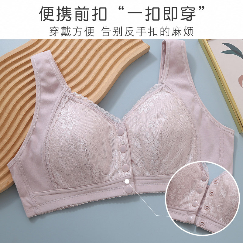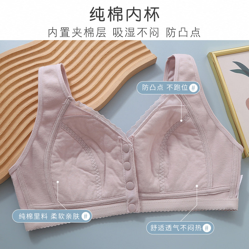 妈妈内衣中老年专用无钢圈老人前扣文胸中年妇女背心里料纯棉夏天