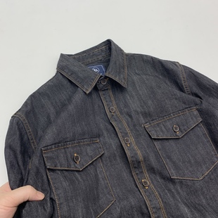 牛仔宽松深灰色衬衣 男潮流机车款 阿美咔叽全棉重水洗工装 牛仔衬衫