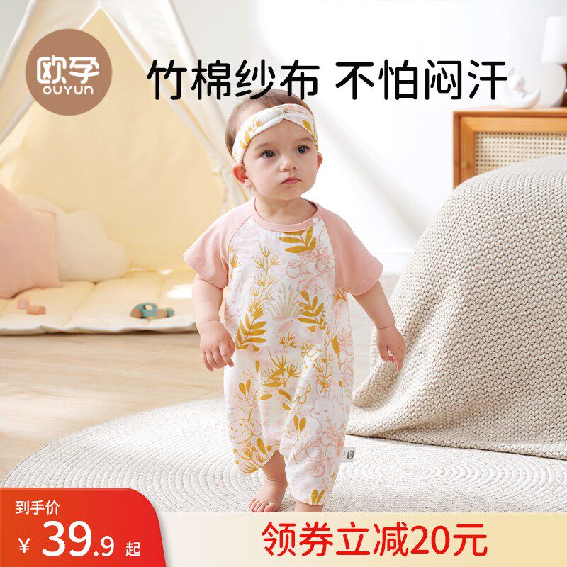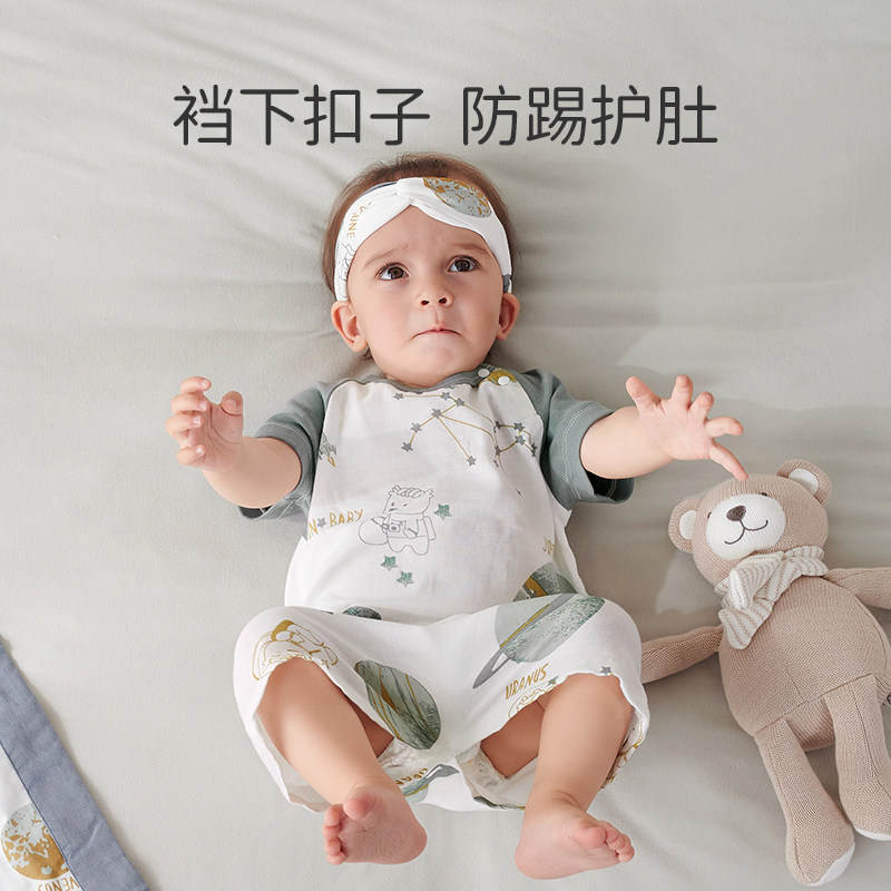 防踢被睡衣吸汗空调睡袋 薄款 欧孕宝宝睡袋纱布竹棉短袖 婴儿春夏季